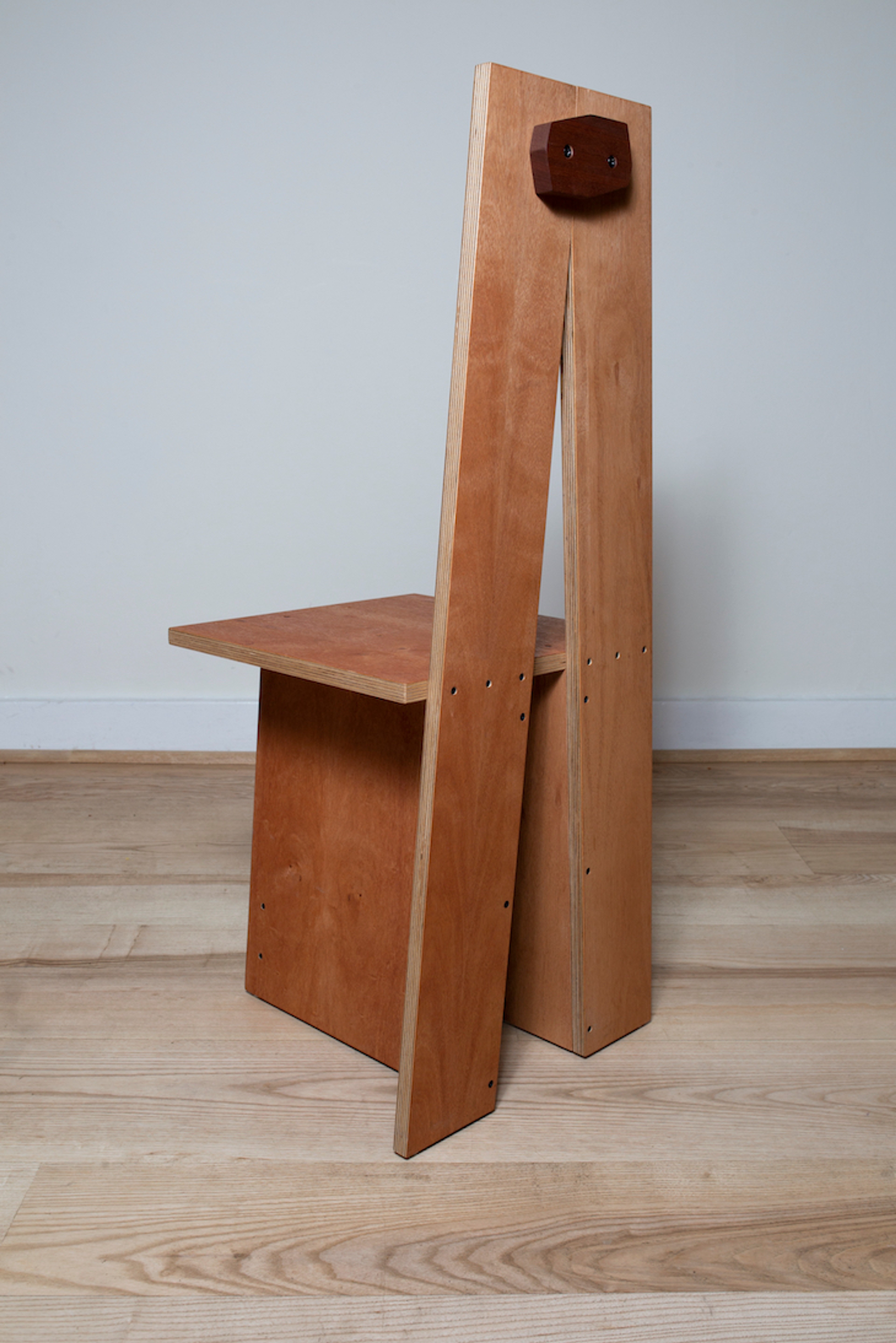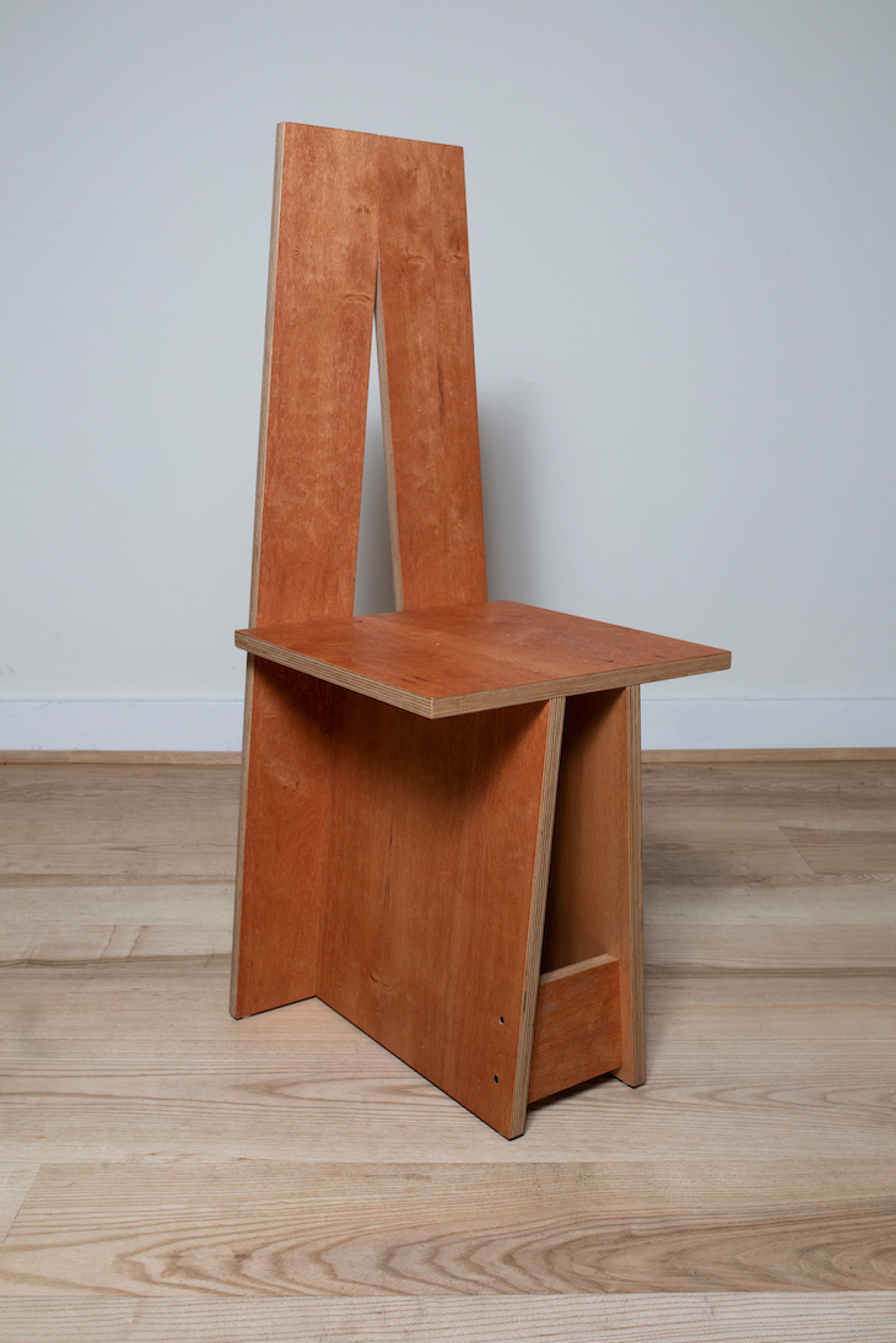 “A” shaped chair with high back. Part of a series of one-off/improvised chairs for Redemption Roasters.