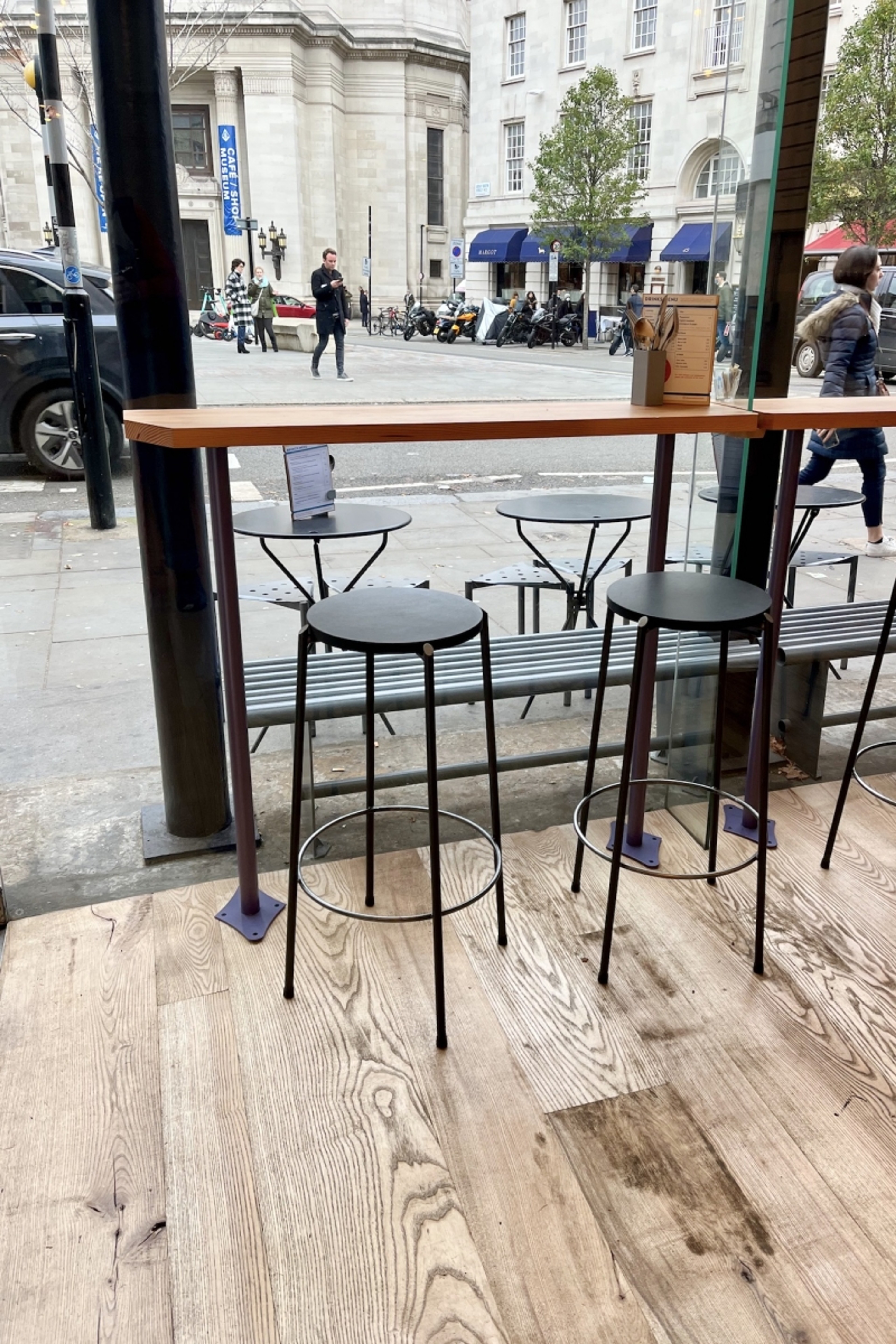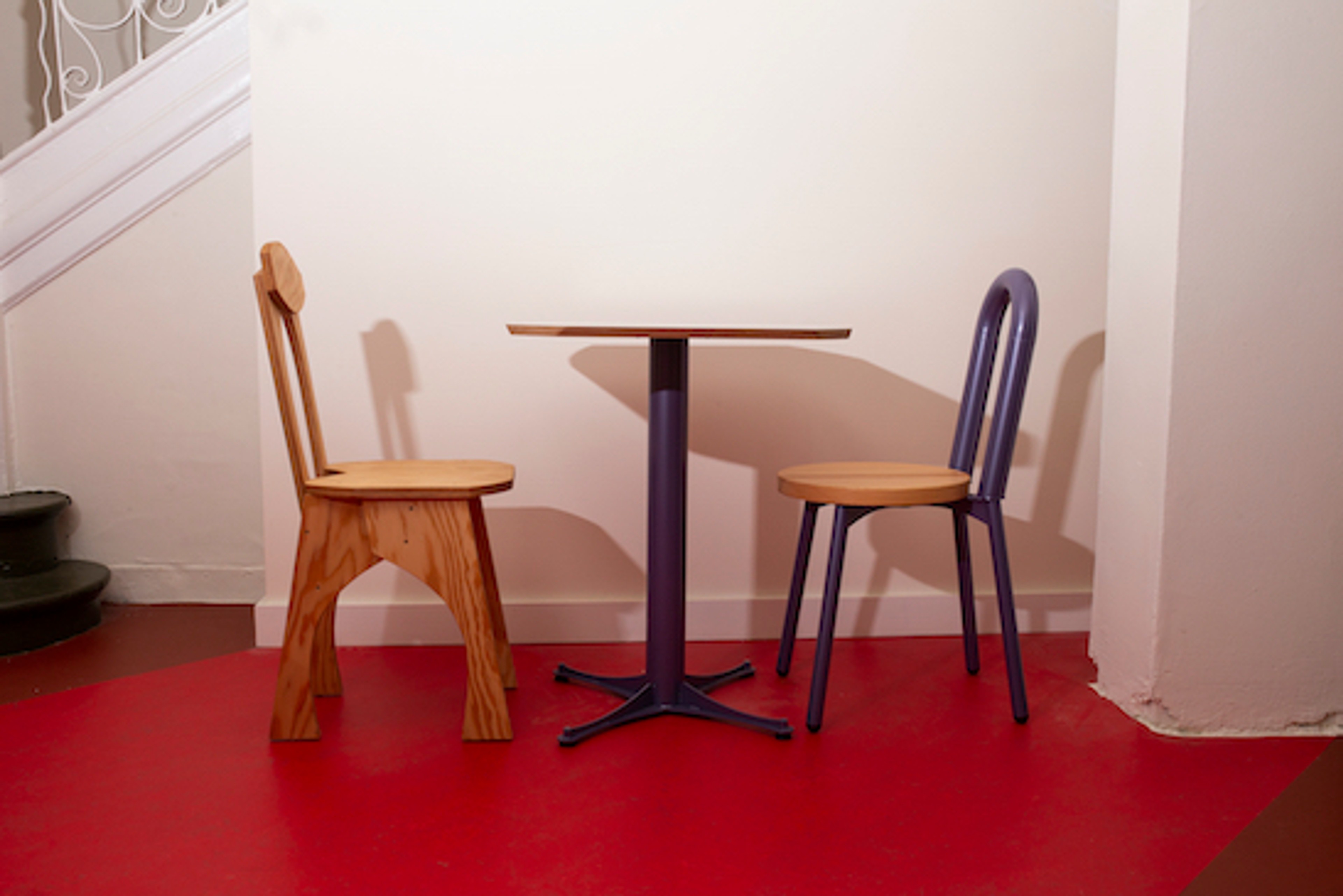 Interior and Furniture for Redemption Roasters Drury Lane. Upstairs clean and uniform with two distinct sections interior/terrace. Downstairs intended to be more informal and inviting the majority of the chairs are one off’s made ad hoc using materials from stock or left over from the rest of the project. Objects designed and produced include Furniture, seating, lighting along with direction of the space in general.