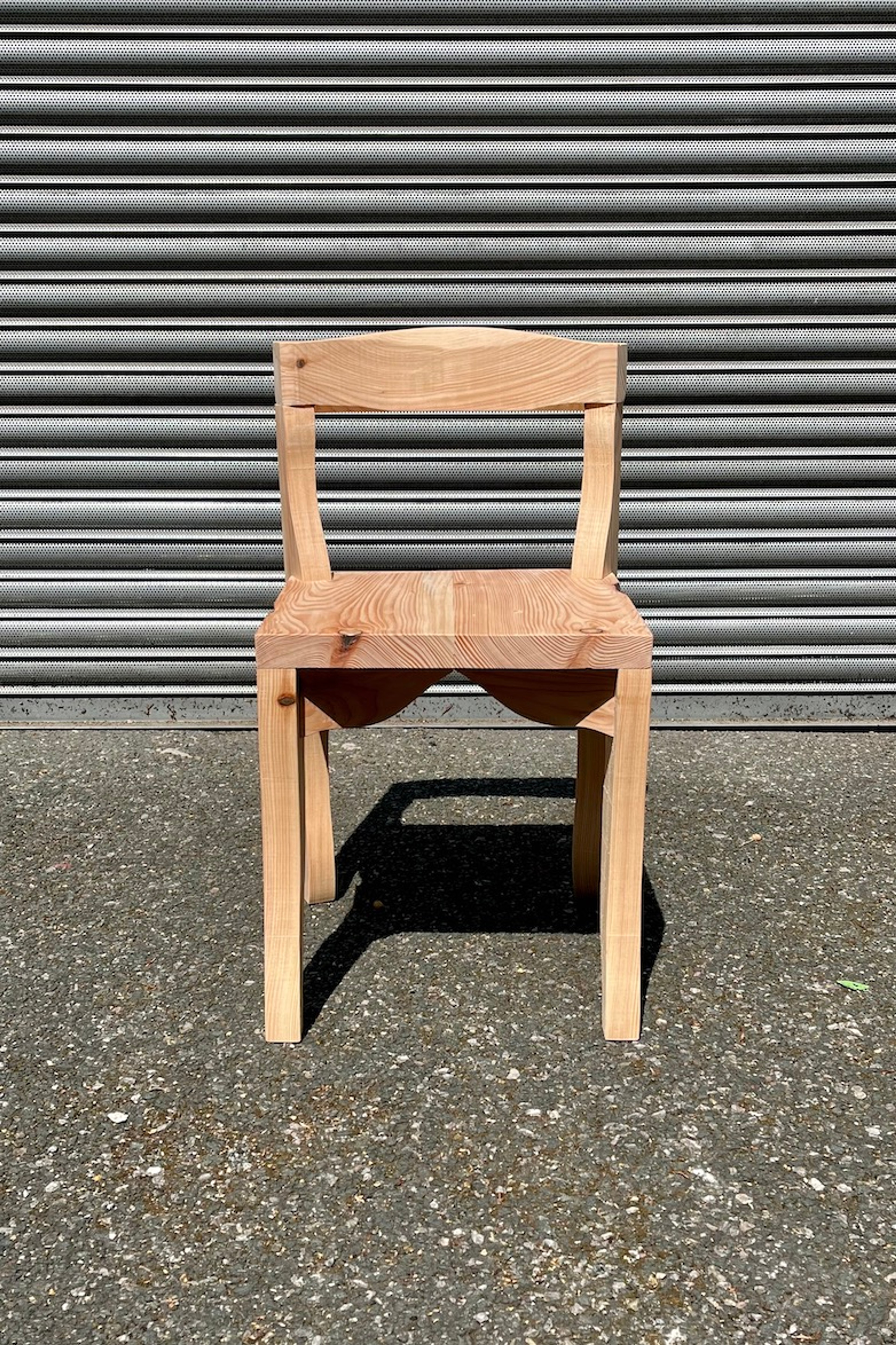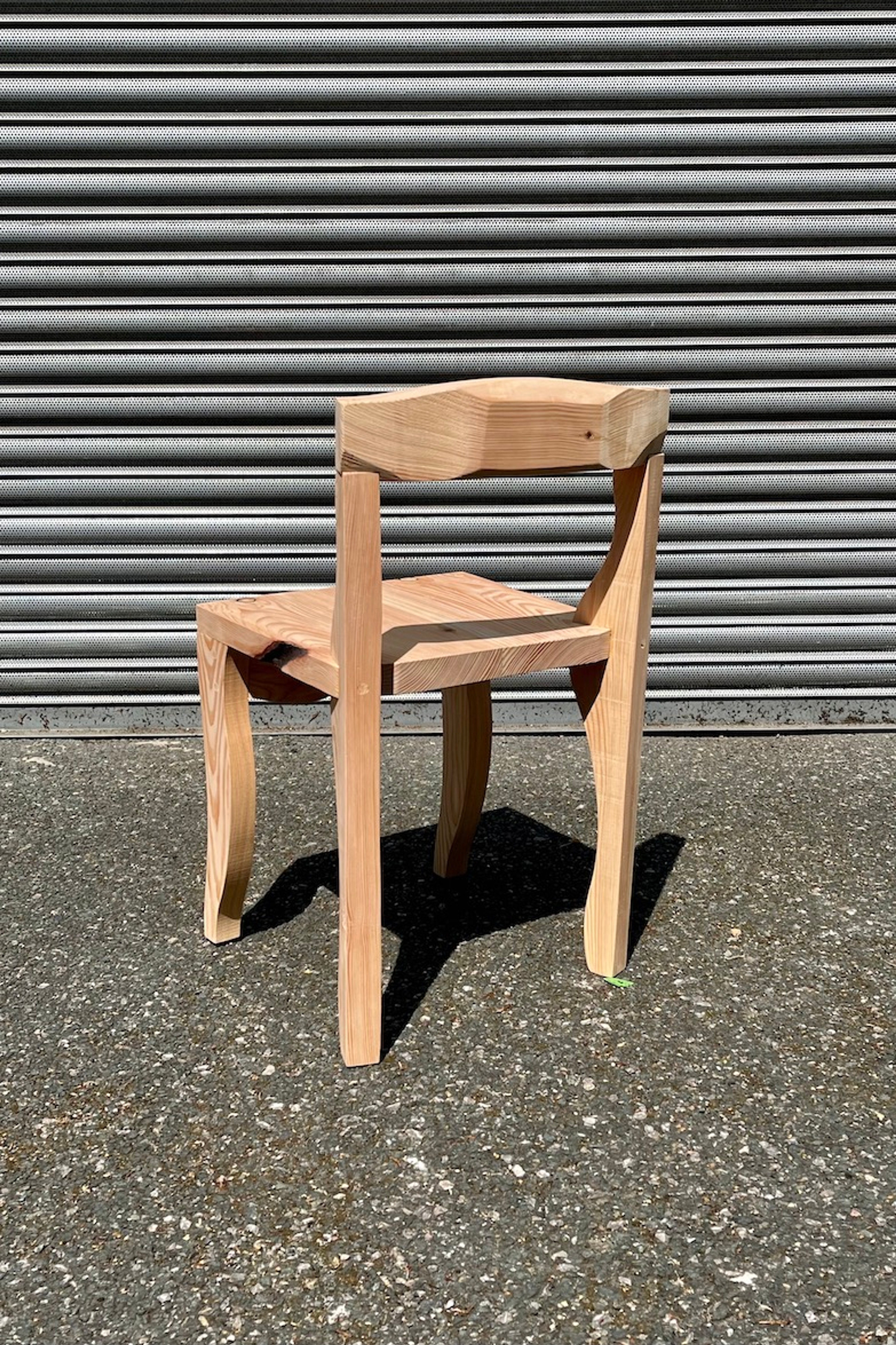Chair made from a single piece of timber which I was given at an unspecified size. The size and shape of the parts were designed to use the timber as a whole with minimum waste.
