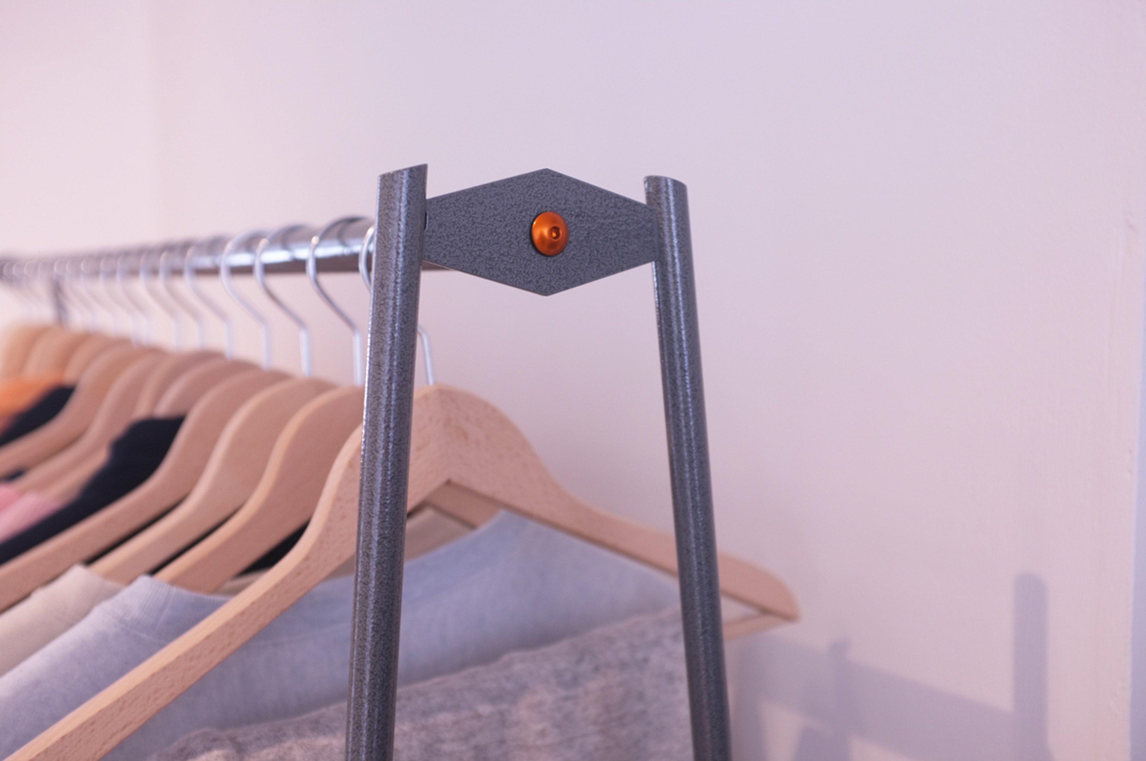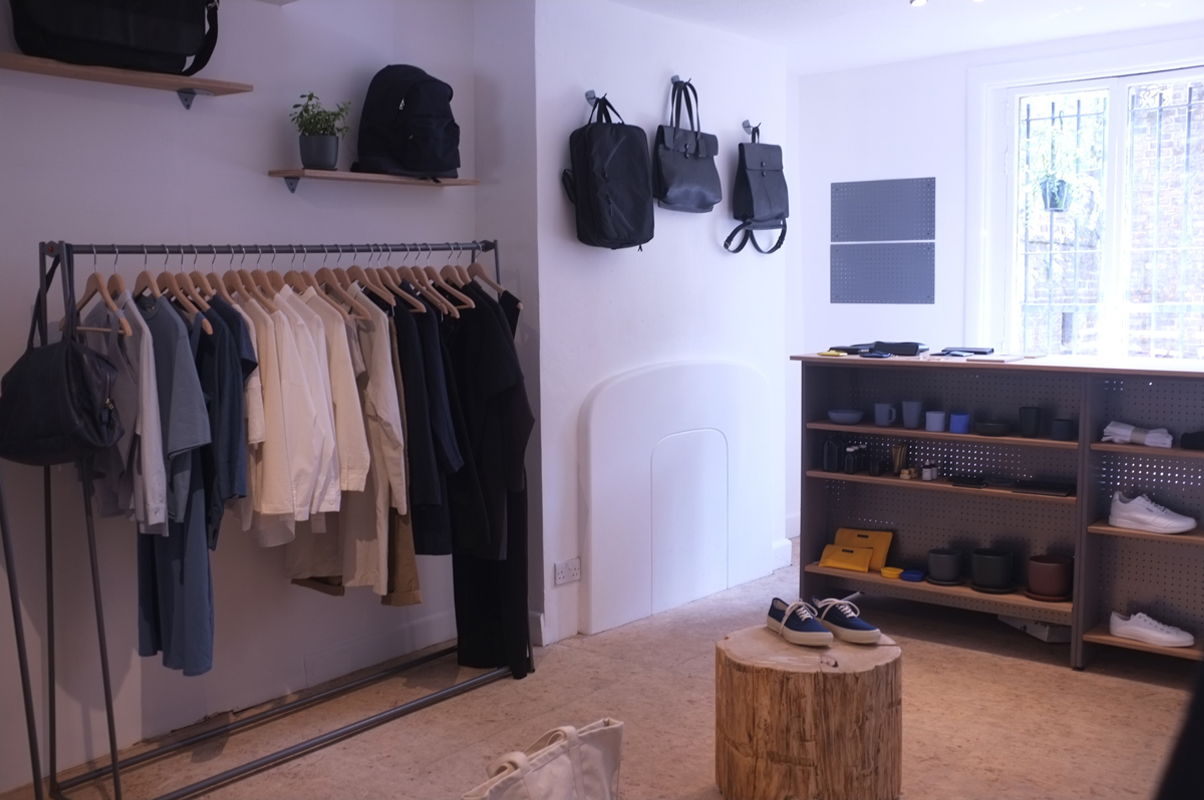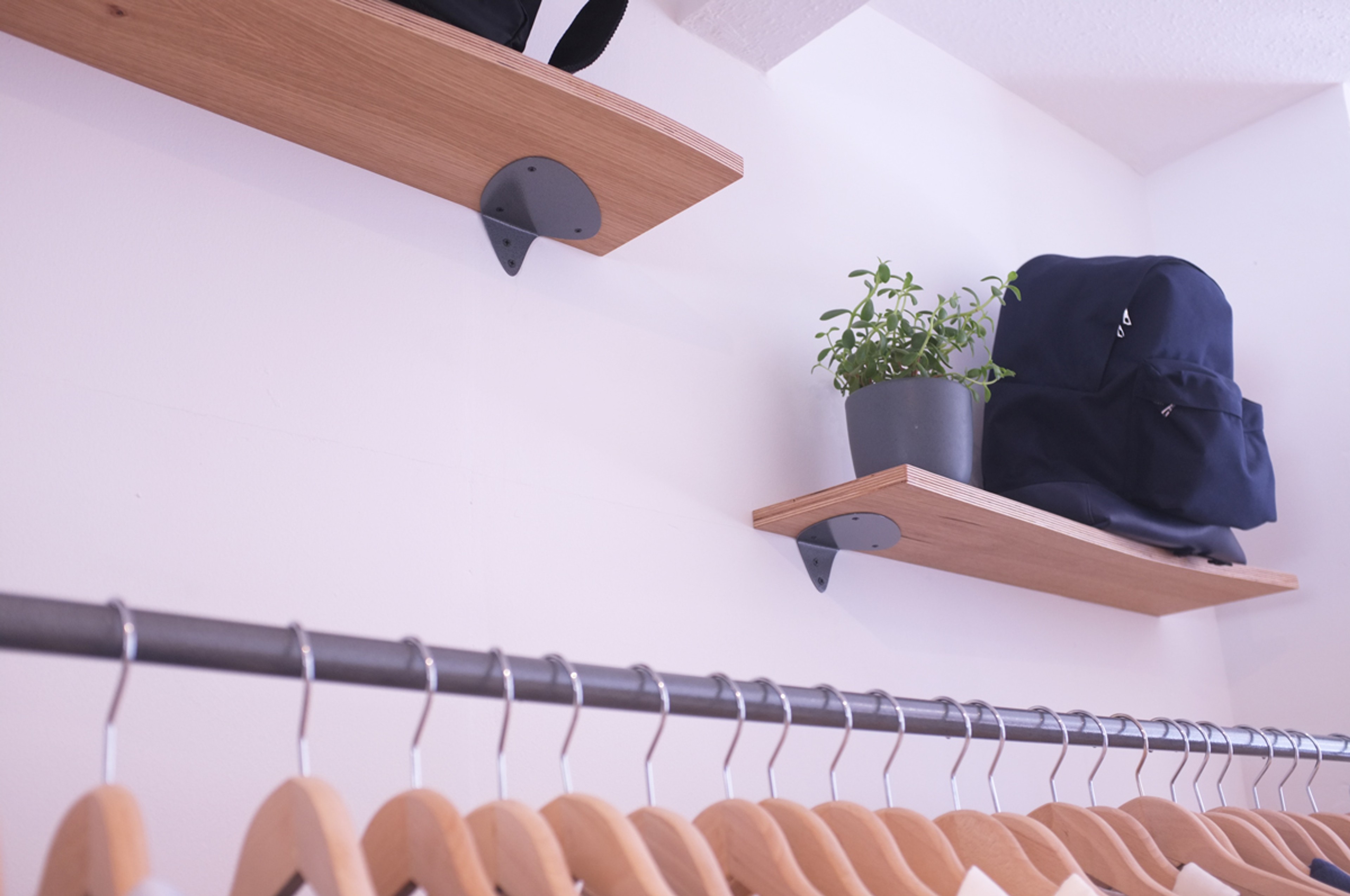 Store fixtures for Open As Usual. Rails, Counter, Hooks, Shelving, Mirror.