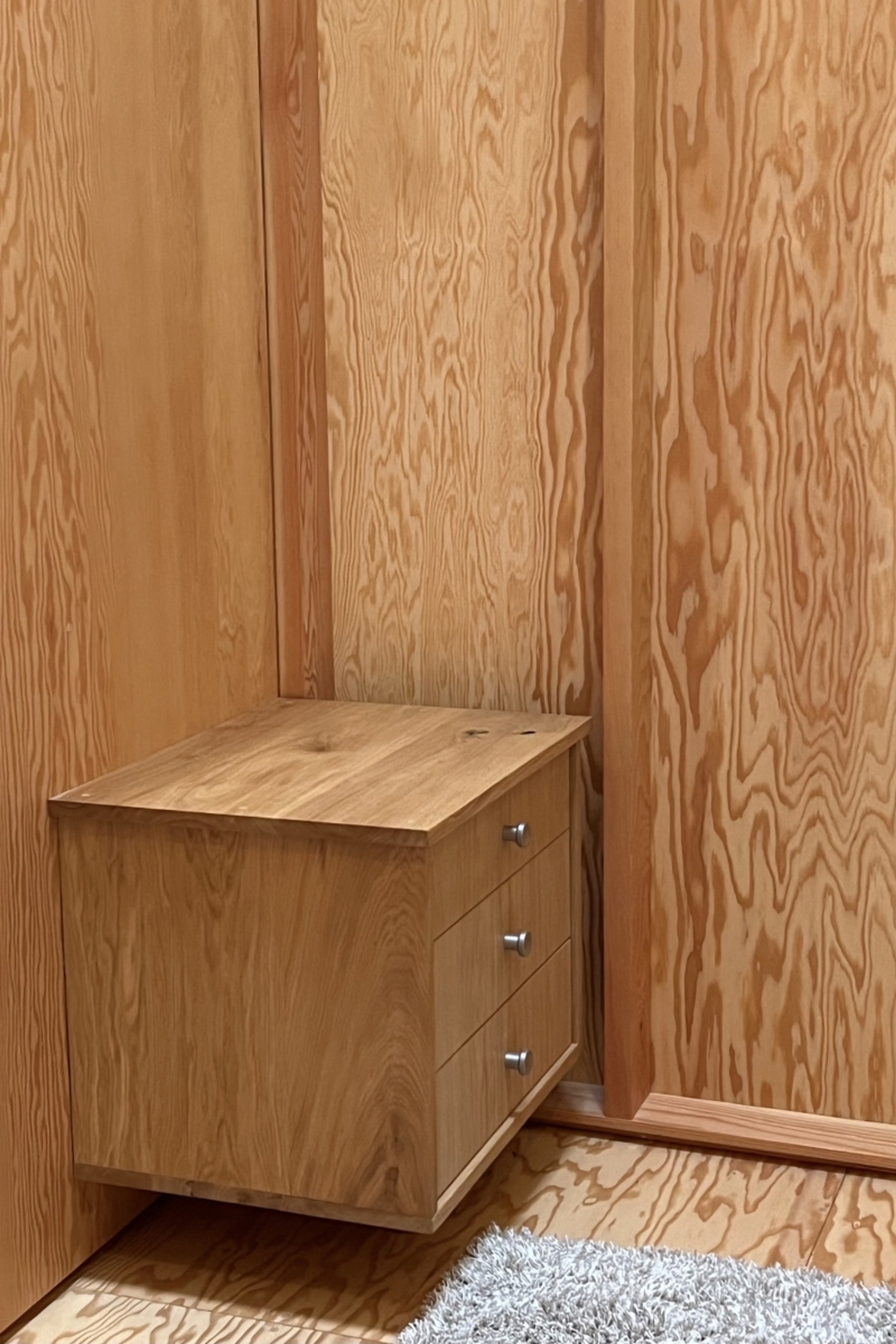 Oak, oak veneered ply, stainless steel – April 2022