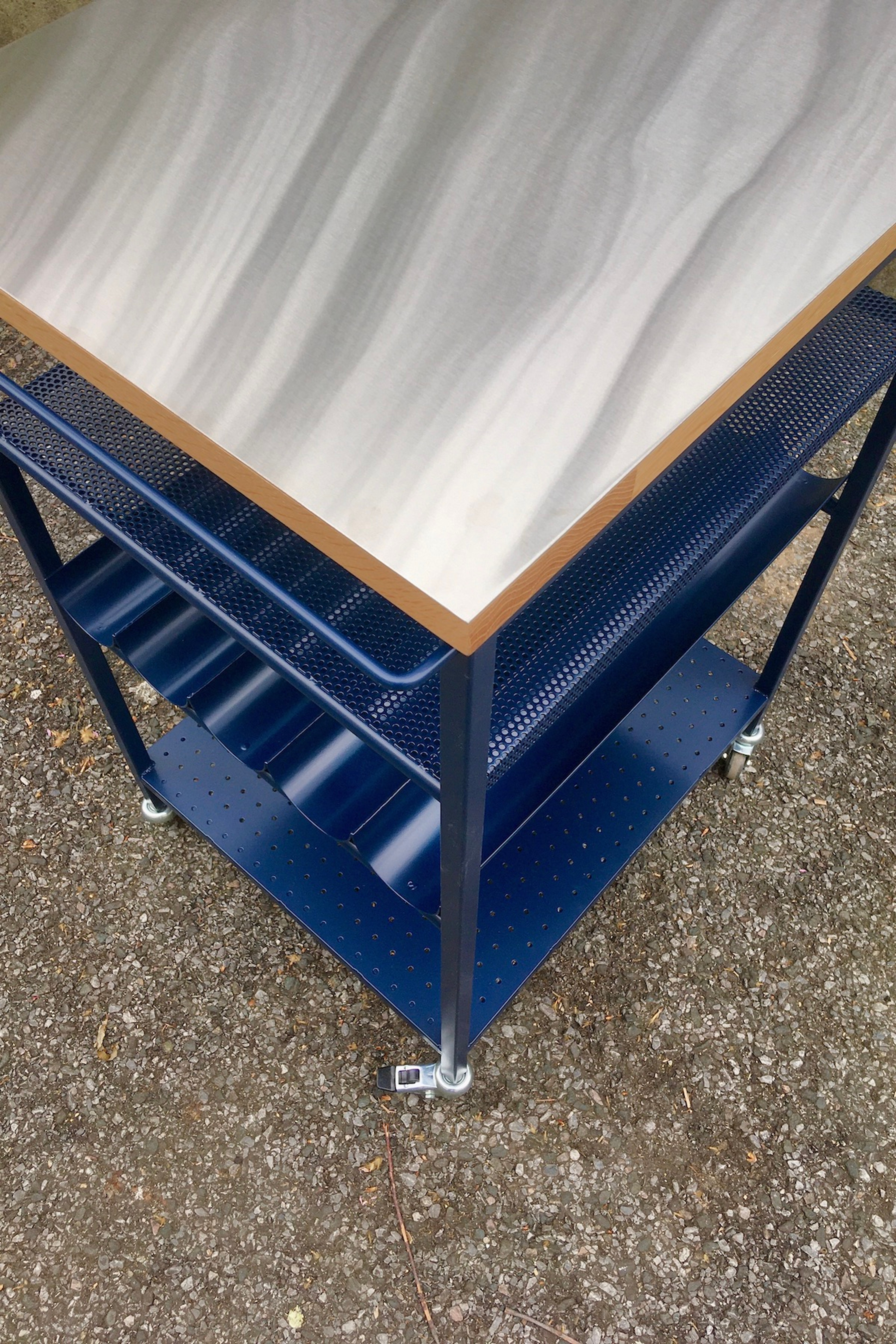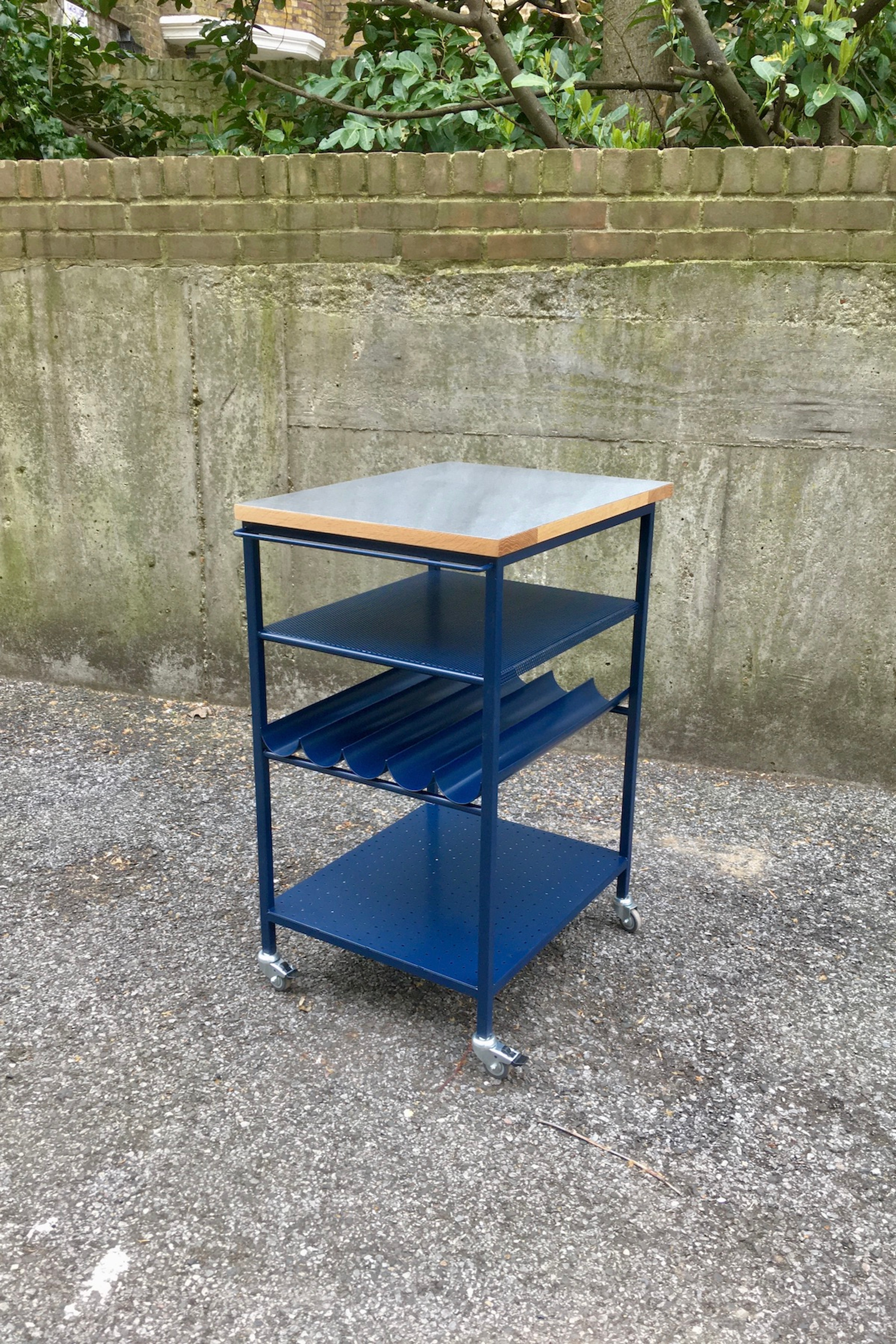 Powder coated steel, Stainless steel, Oak – April 2021