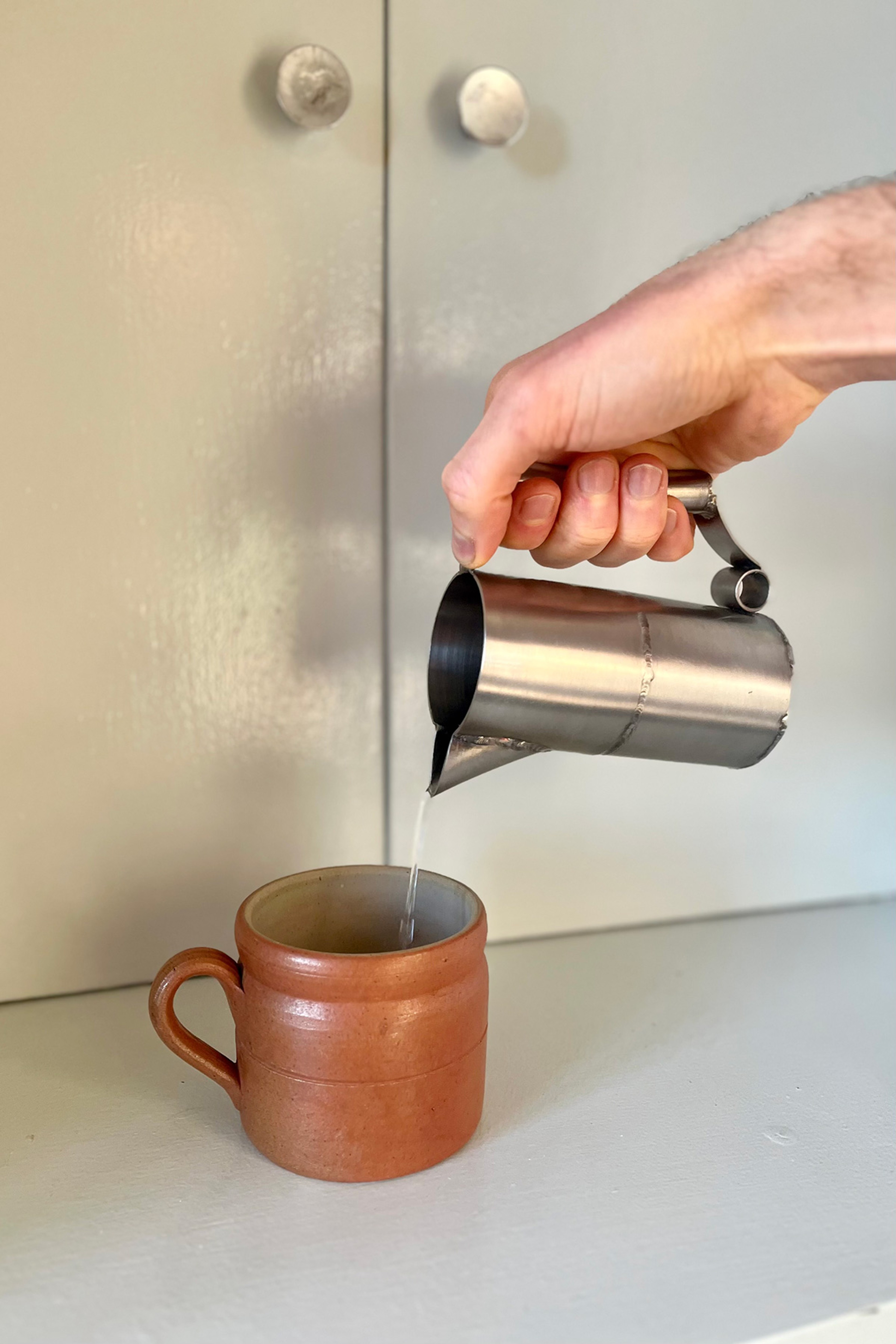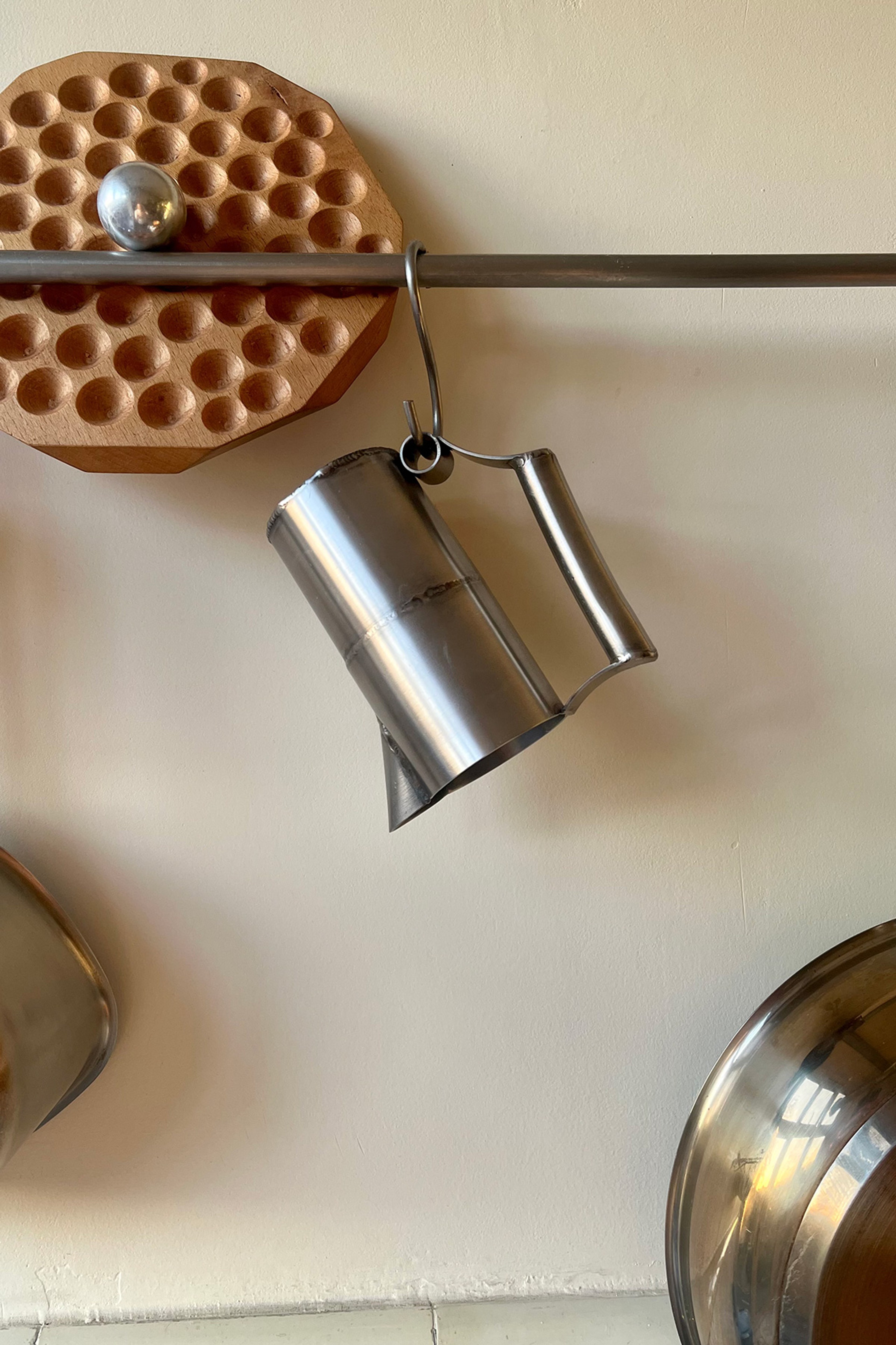Jug made entirely using tubular stainless steel cut, rolled, pressed, crushed.
