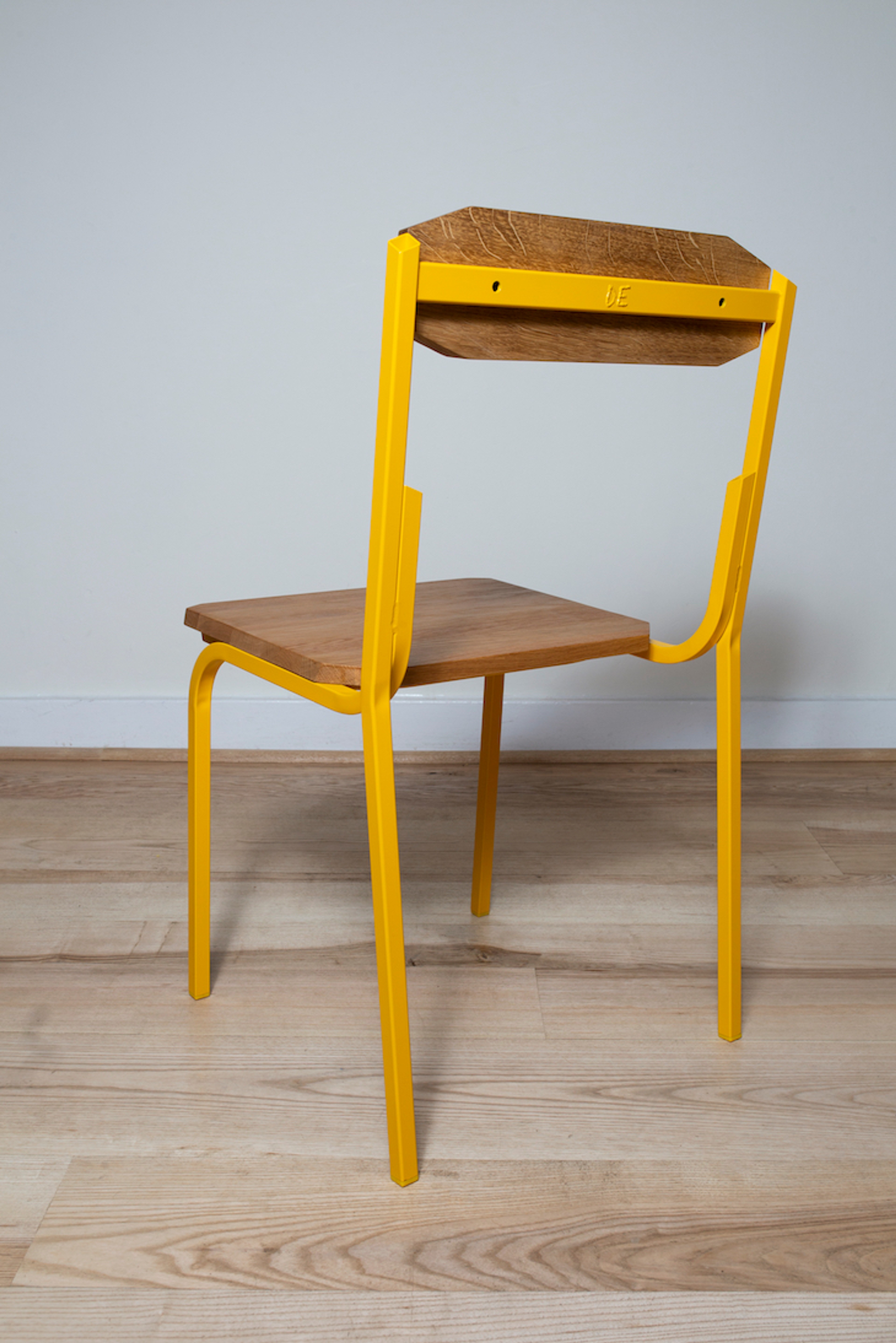 Chair using bent 19mm Box section and oak. Part of a series of one-off/improvised chairs for Redemption Roasters.