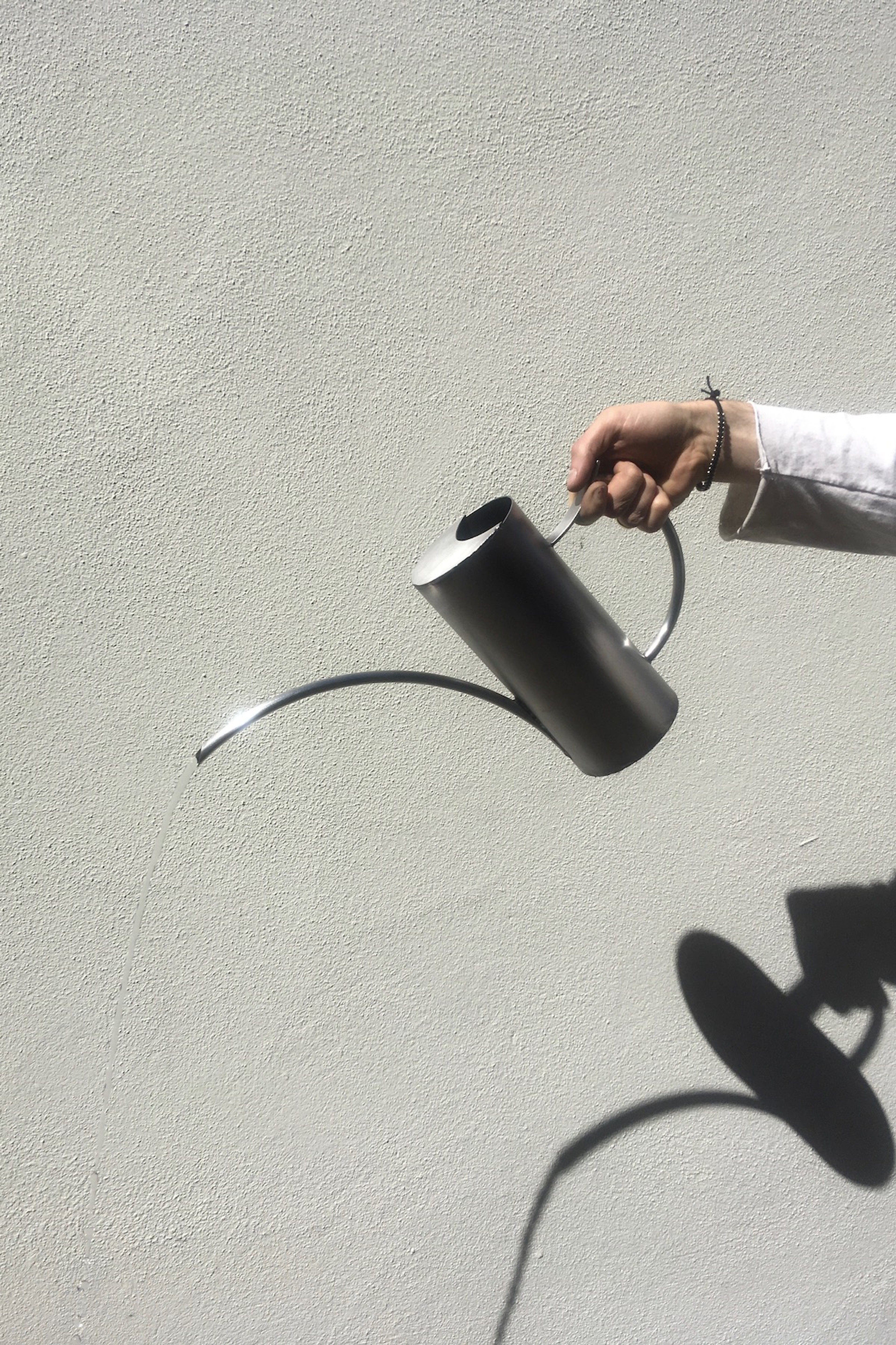 Stainless steel watering can. Holds approx 1.2L of water.