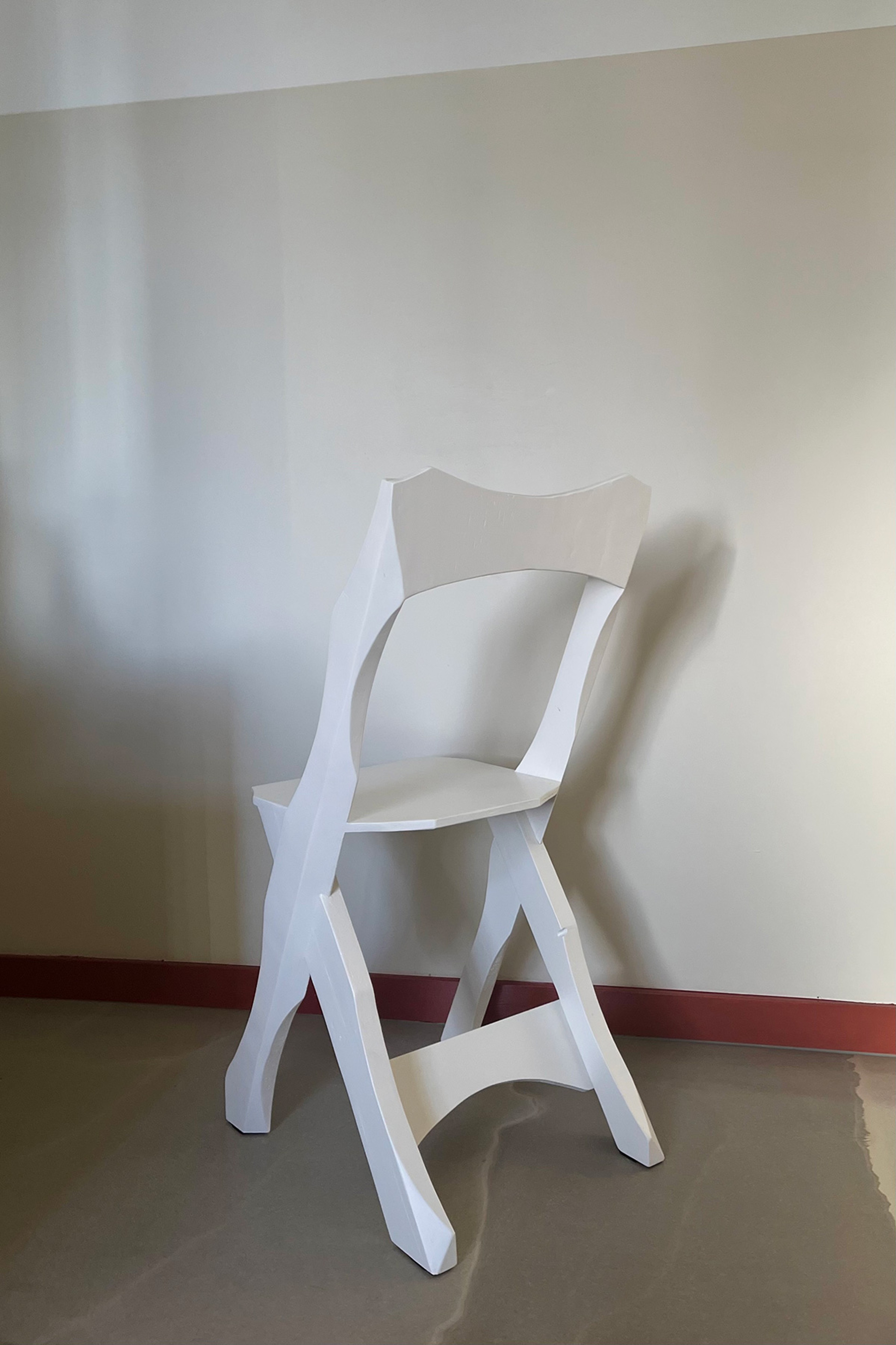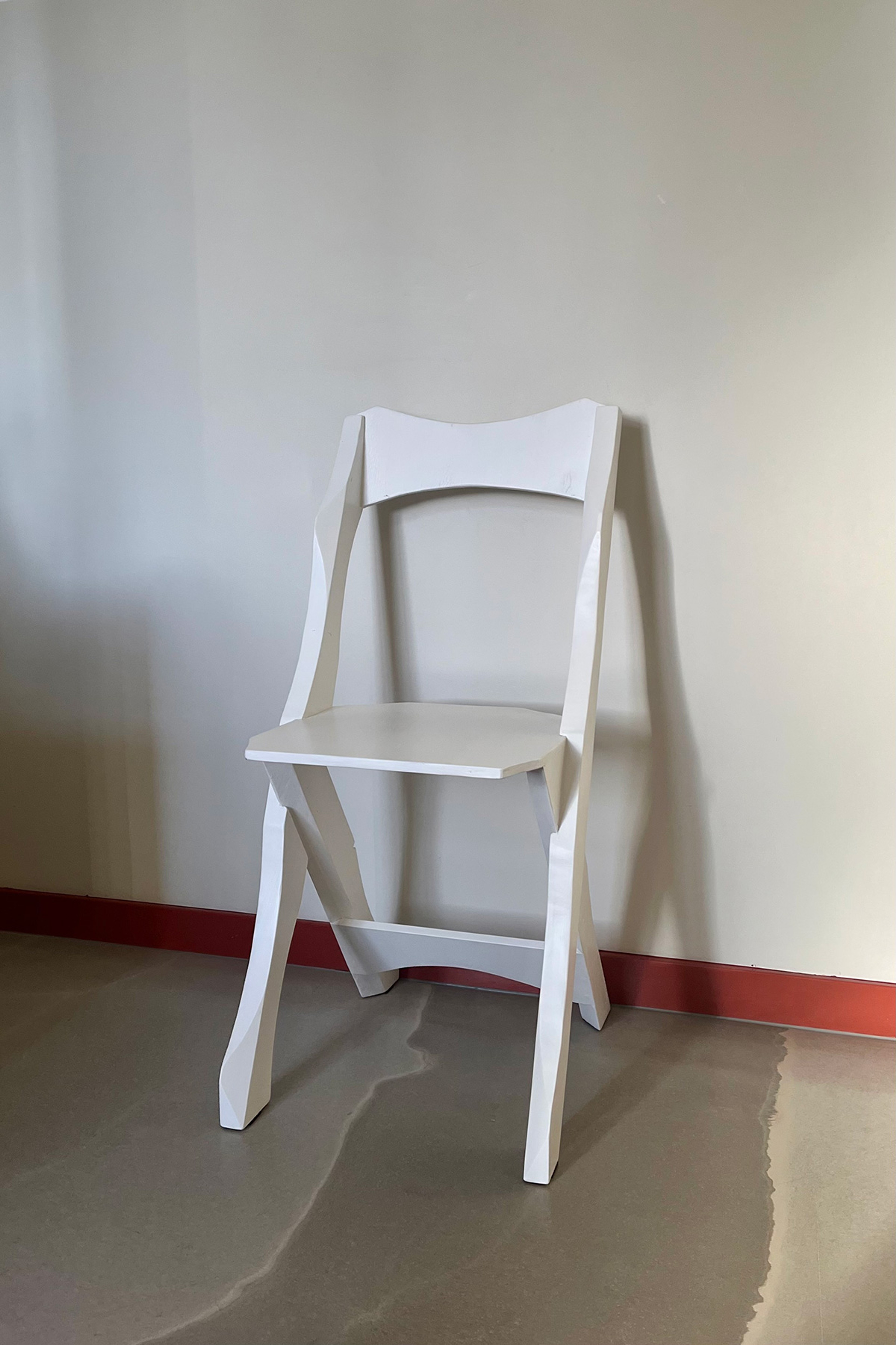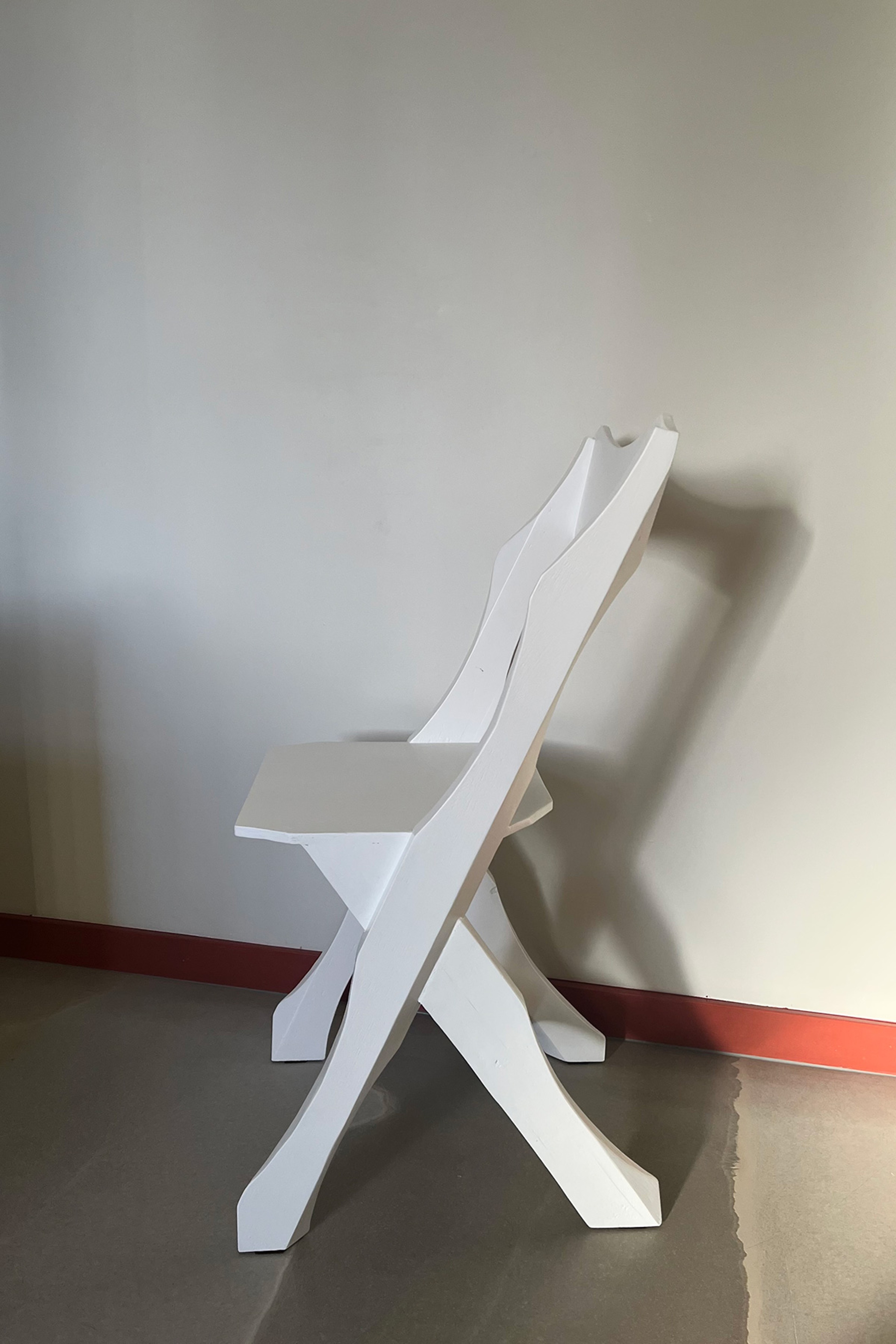 Chair using pallet wood and ply, a continuation of the "Ketra" series. The legs started out as rough sawn 2X4 timber once cut to length and the central joint dry fitted I removed excess material through a combination of rip mitre cuts and free hand bandsaw curves.