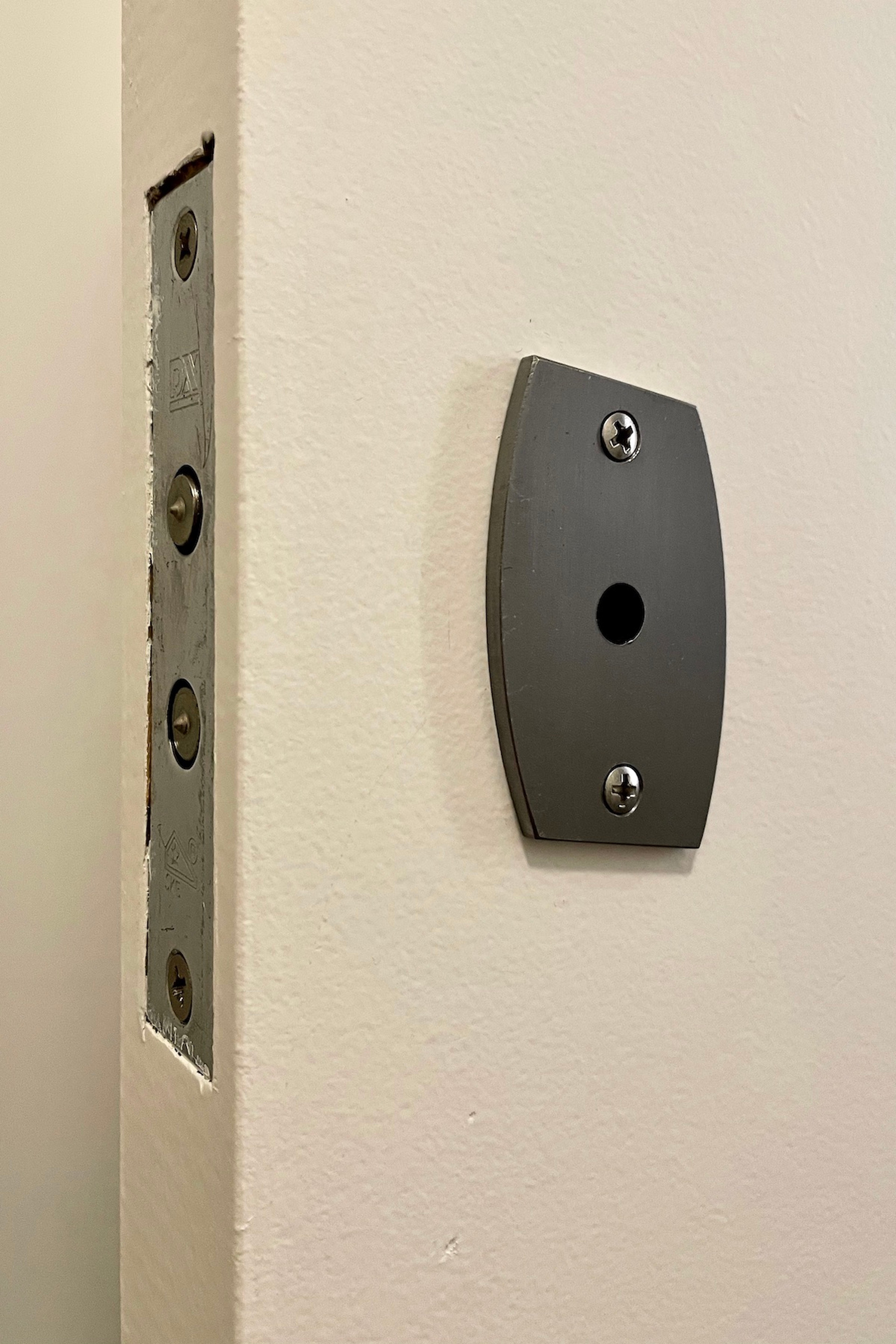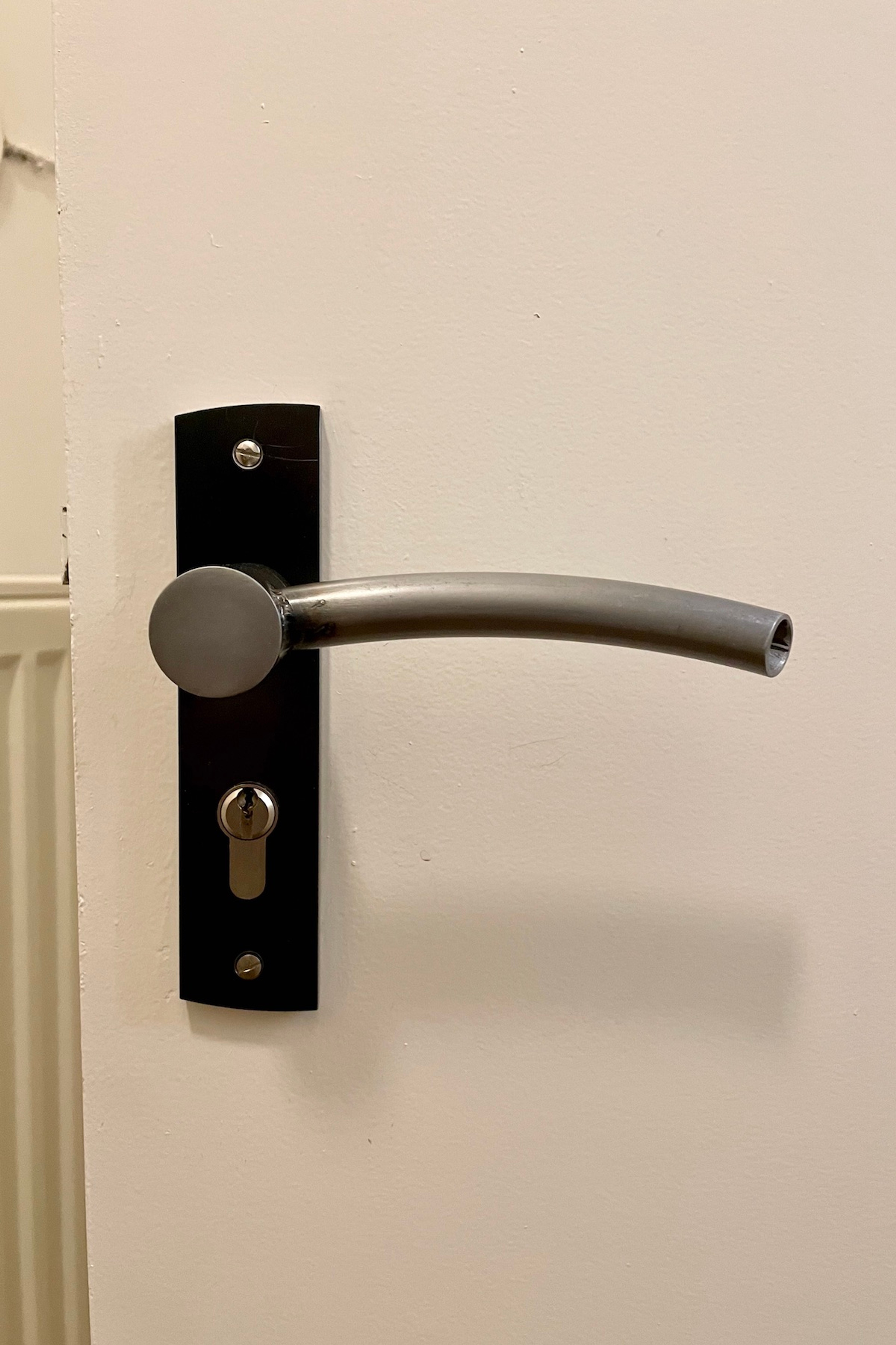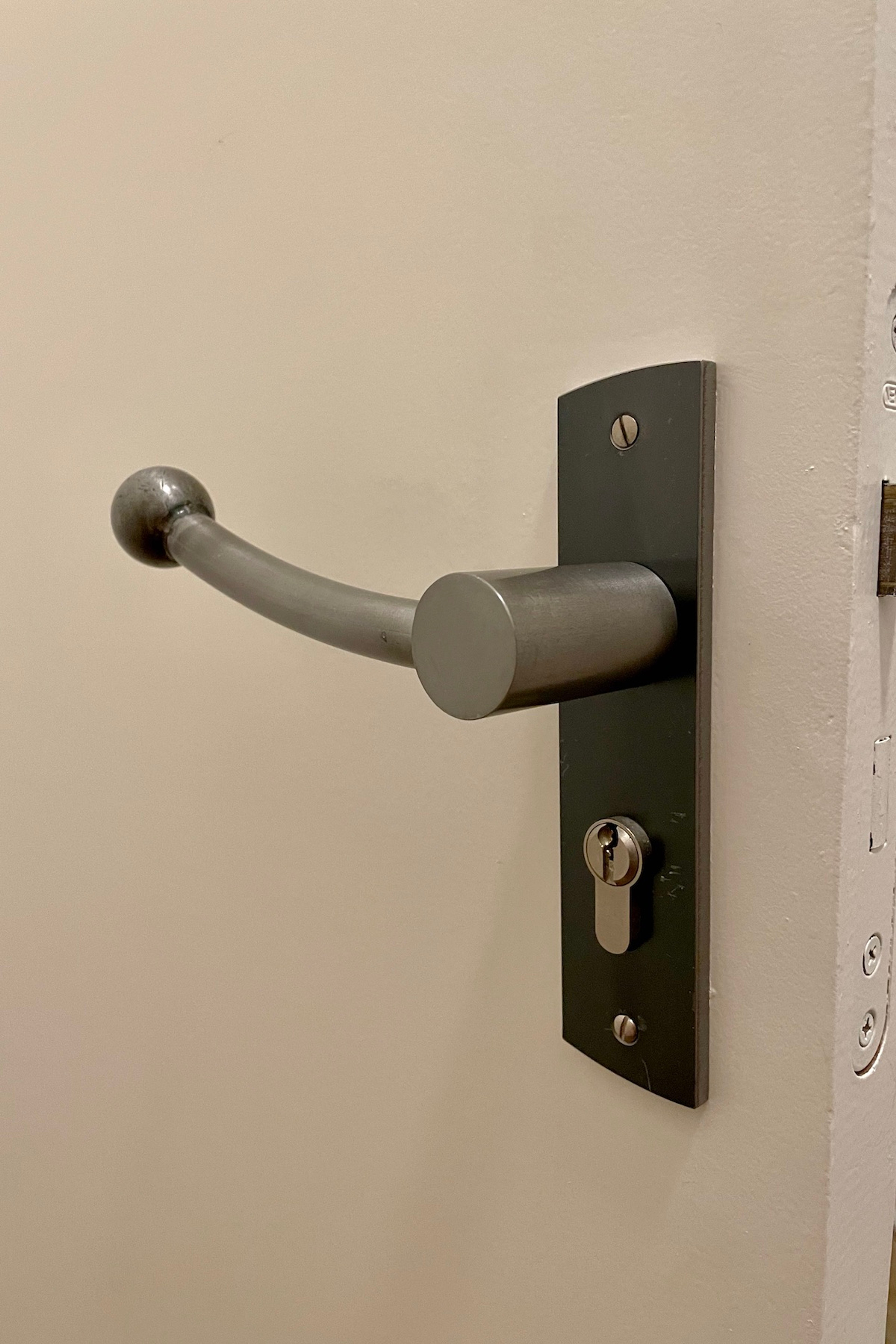 Front door handle and accompanying lock plates. External with ball, internal without.