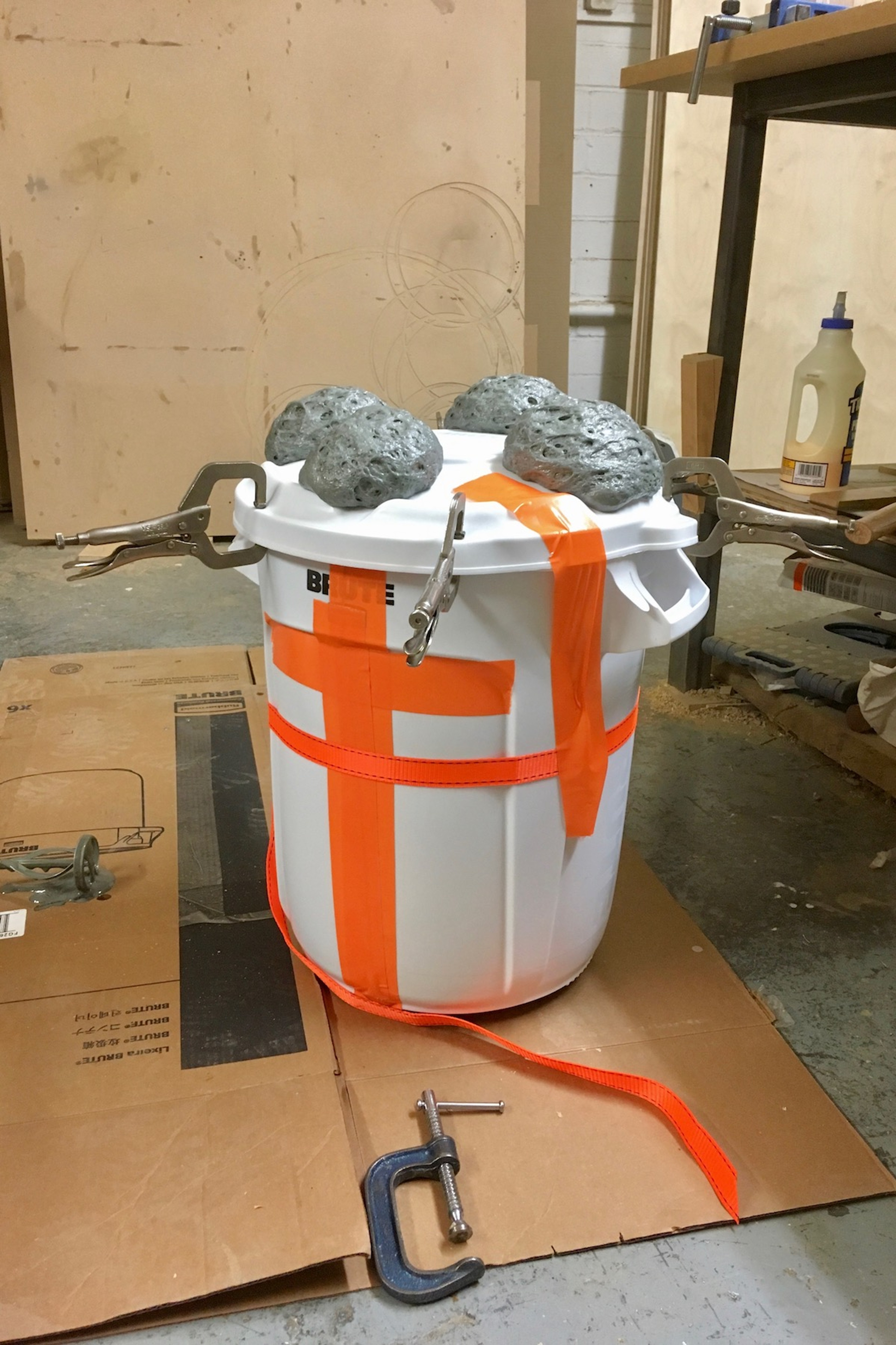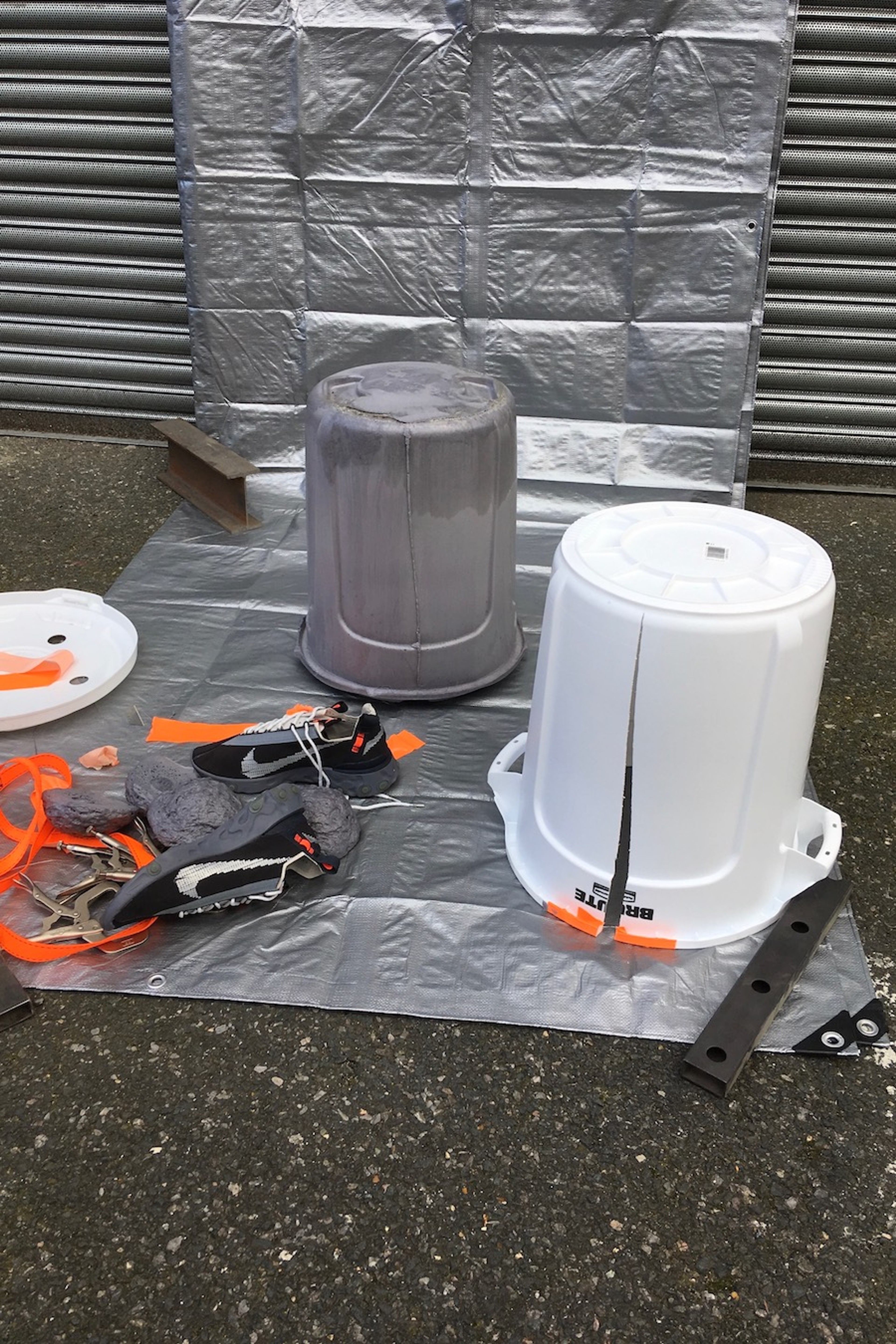 10 Gallon Brute Container, Perforated Aluminium Sheet, Cam lock straps, Grey Valchromat, Reconstituted Foam Sheet, Flexible polyurethane Foam, Gaffa Tape – February 2019