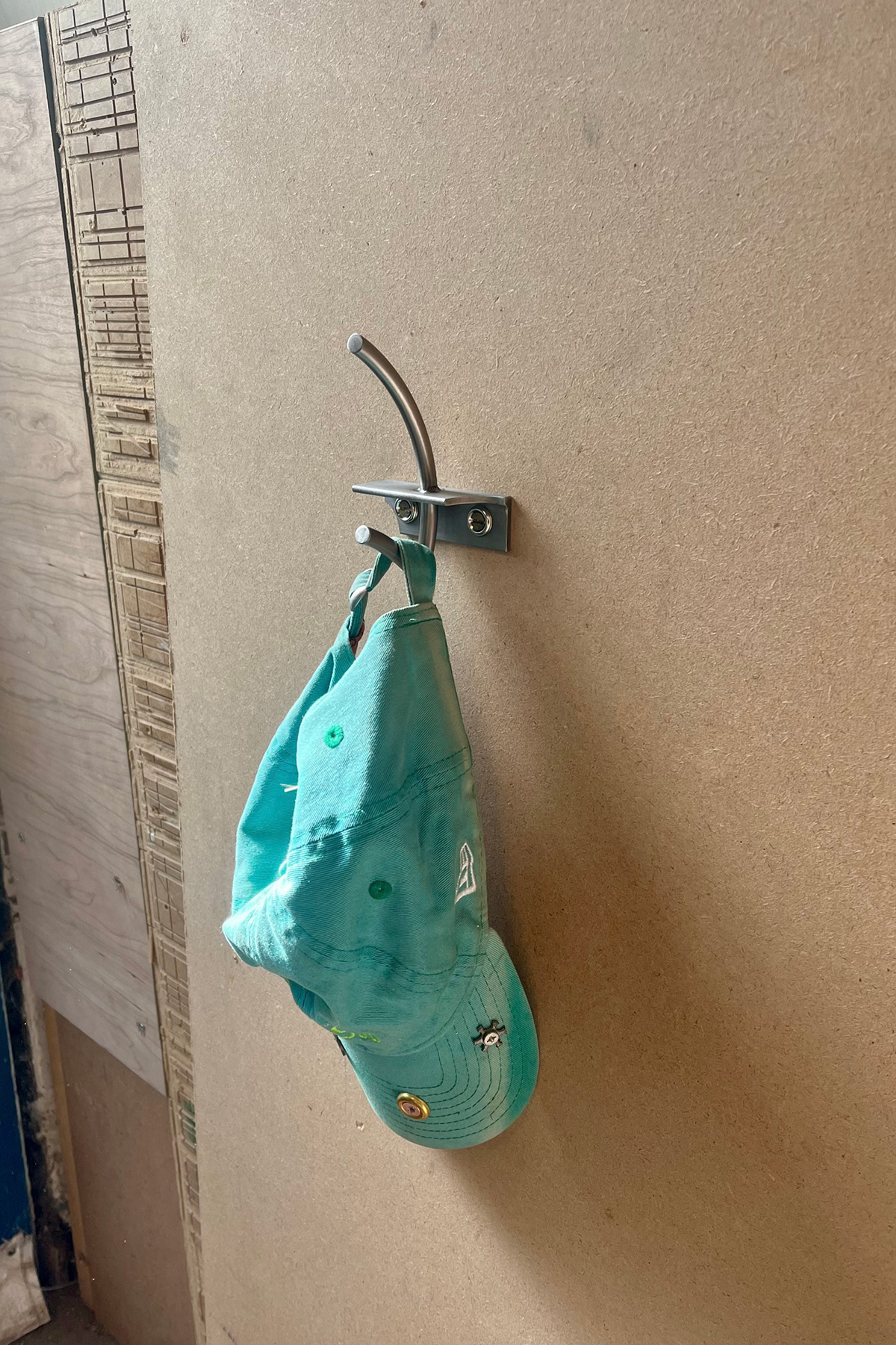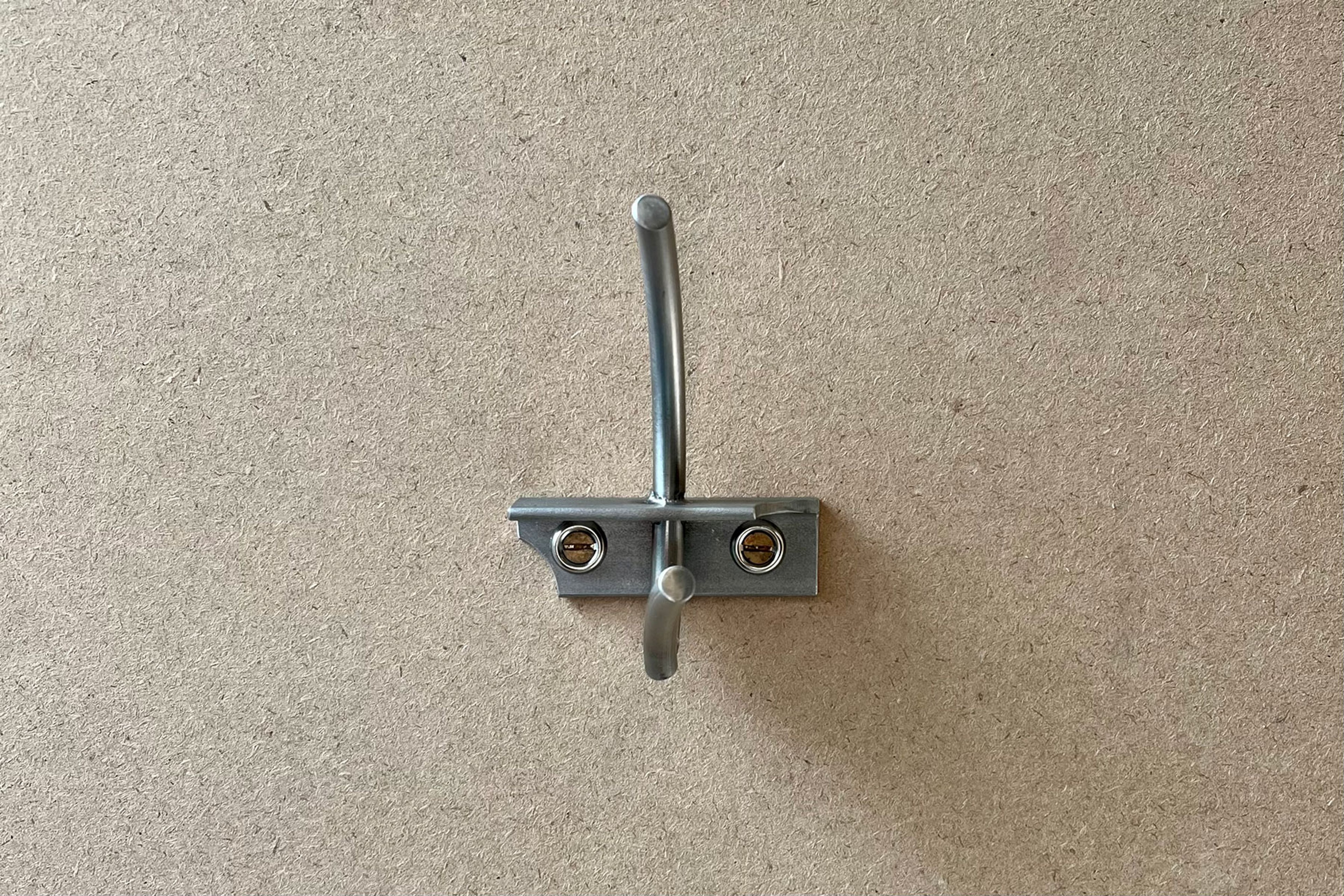 Coat hook using stainless steel angle combined with roll round bar. a singular version of "Roll with it"