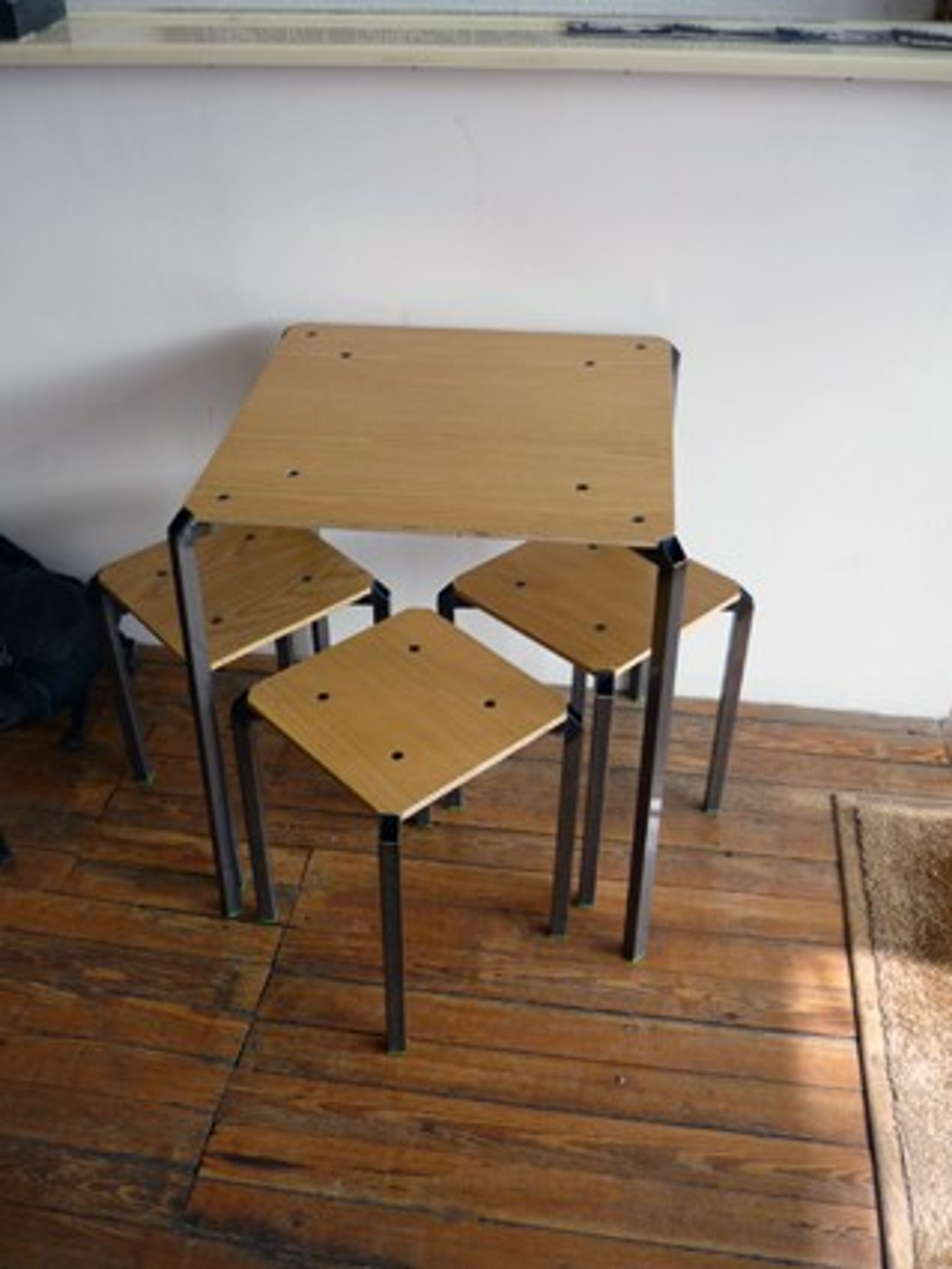 Powder Coated Steel, Oak Veneered Ply