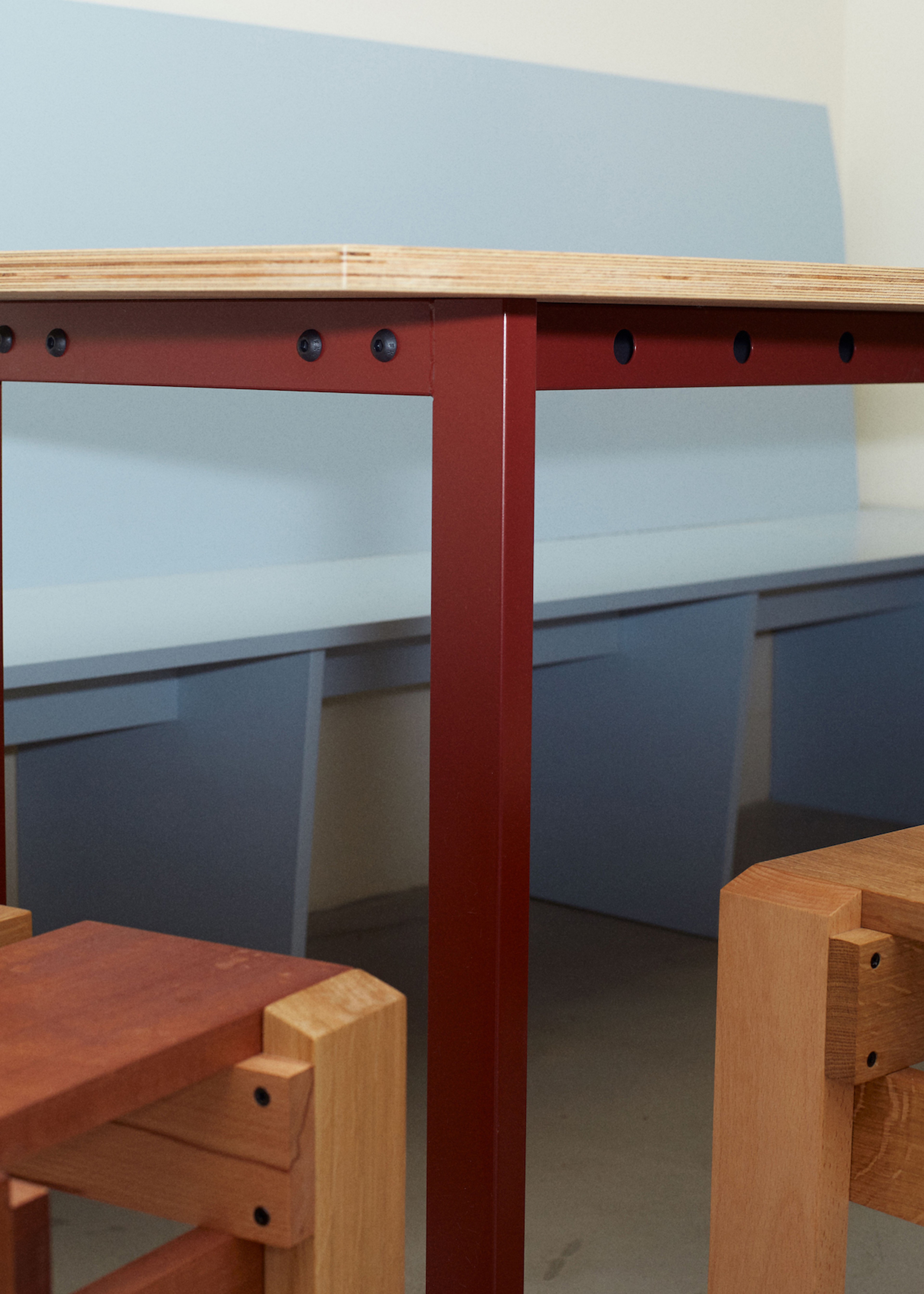 Various solid wood, Powder coated steel, Painted MDF, Oak veneered ply – April 2019