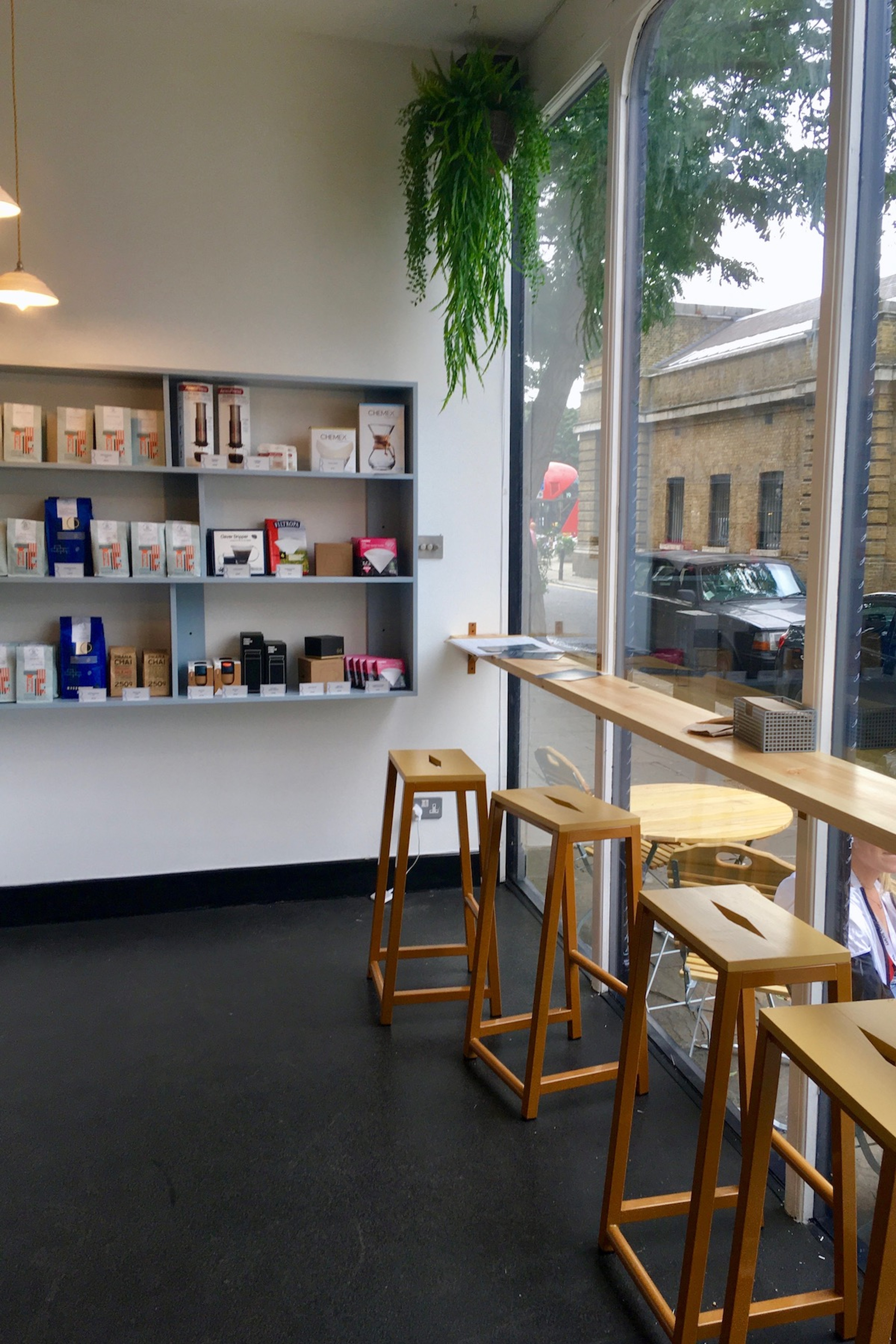 Seating, tables, lighting, shelving, cup station, bar design and tops, number.