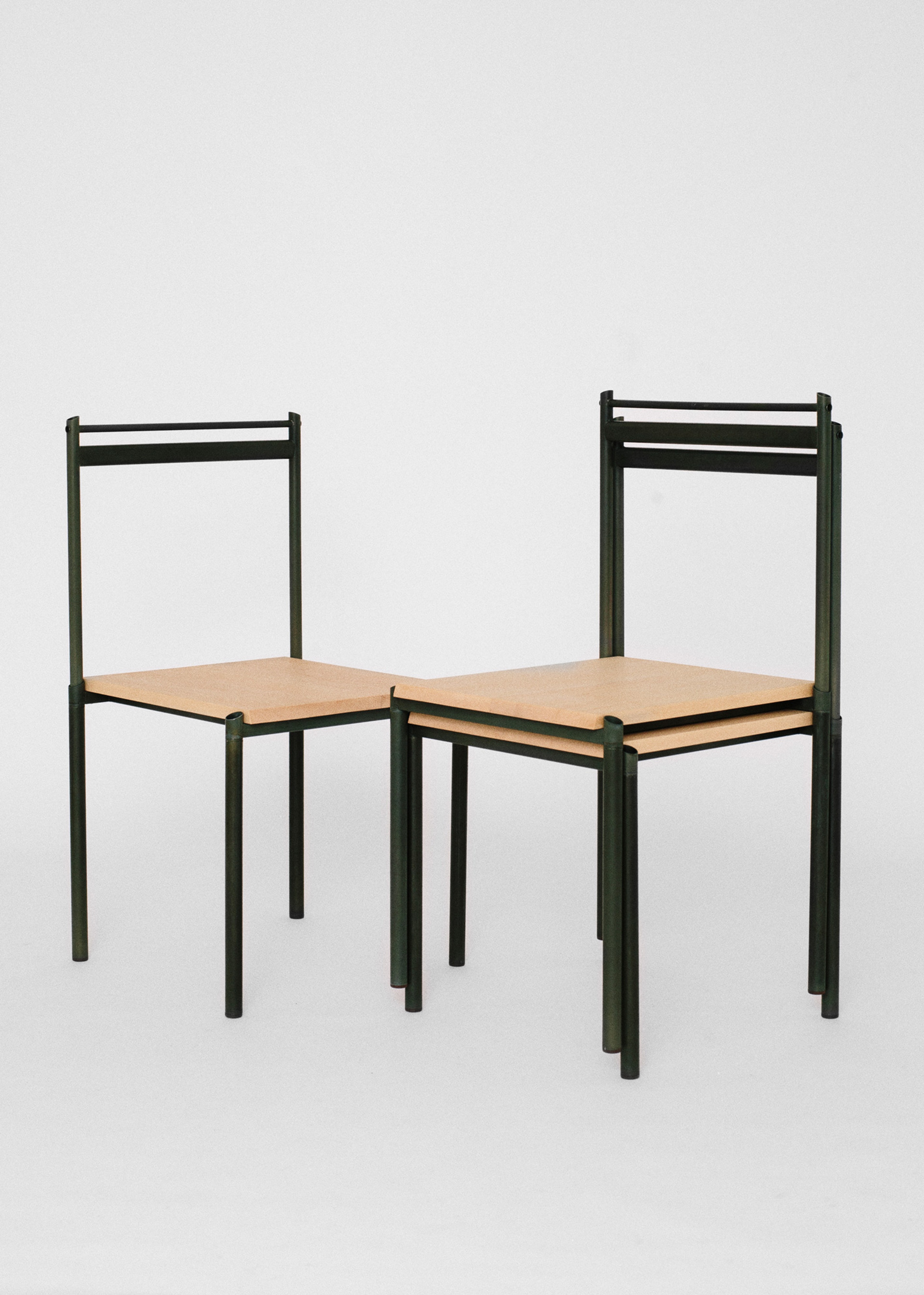 A collection of seating that stacks and packs. Designed to fit within a modern lifestyle of frequent moves and smaller spaces. The self-assembly Stool and Chair are intended to provide an affordable and flexible option that can easily be packed for a move or stacked when space is needed. Stacking/Packing has been produced in a way that could easily be made in larger runs with the same components and Tubular steel used throughout further extending the idea of an affordable utilitarian piece. The frames have been finished with a Passivated Zinc coating, an industrial process generally used on large runs of smaller components rarely seen on items of this size.