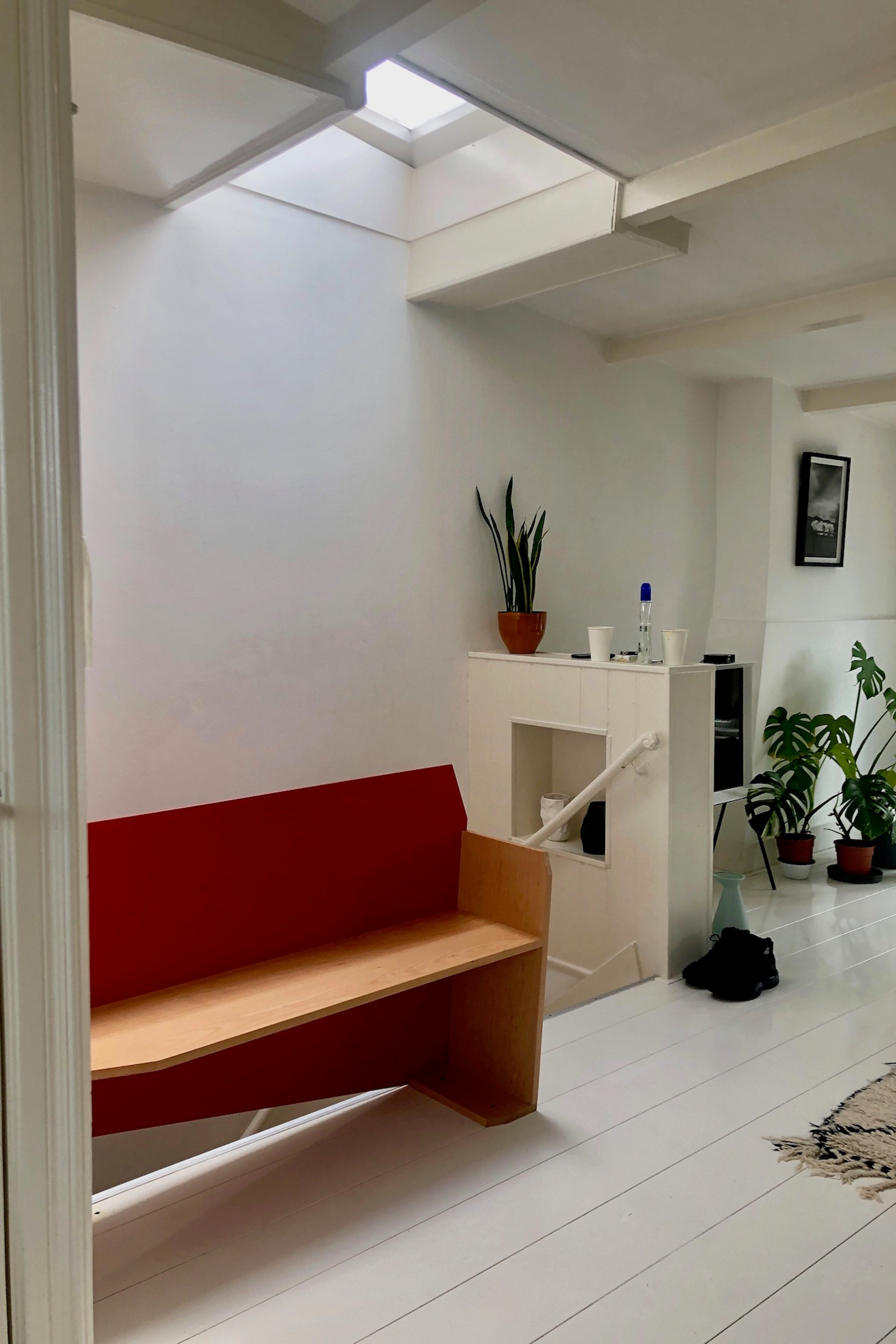 A seat in Aluminium and Beech which doubles as a balustrade.