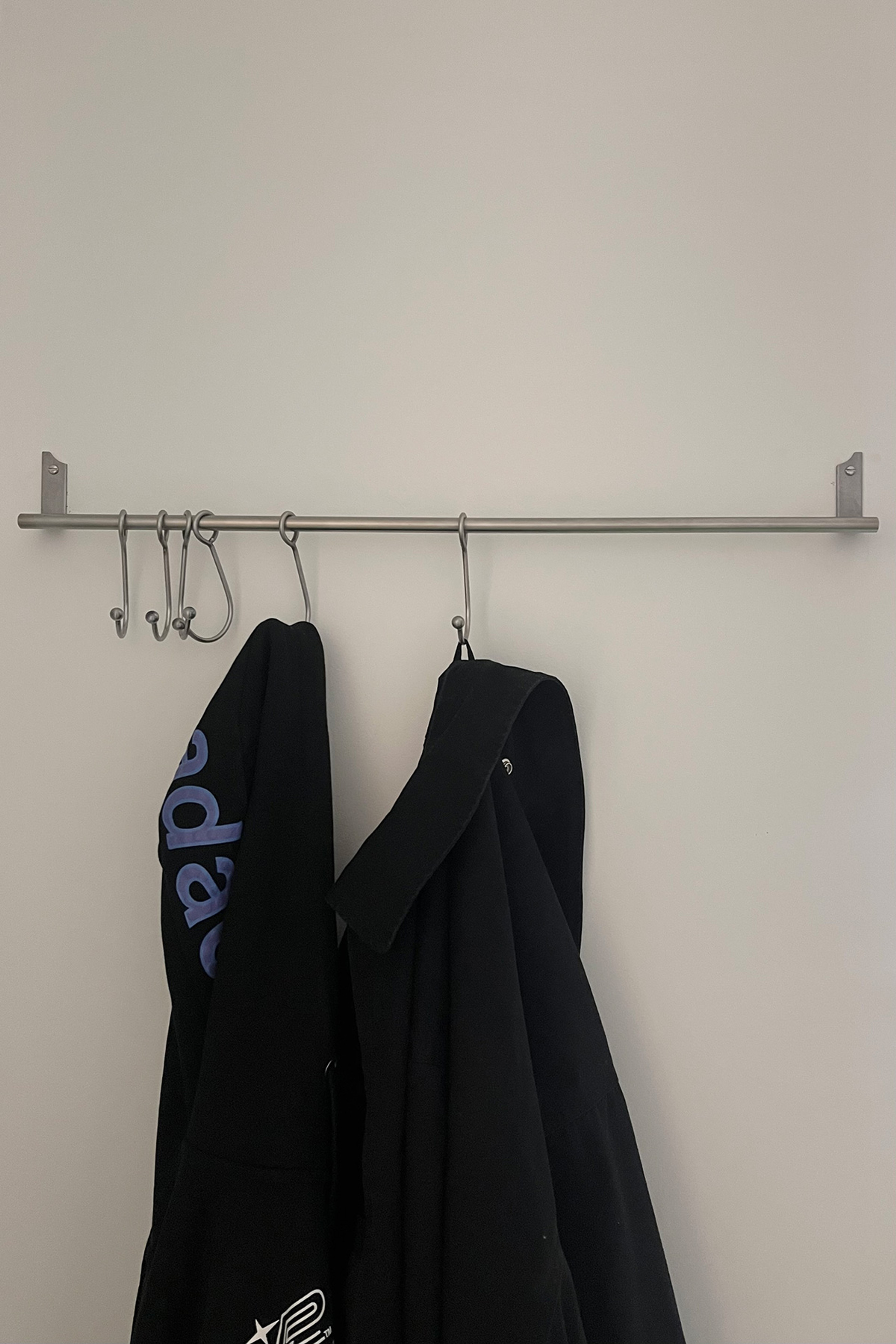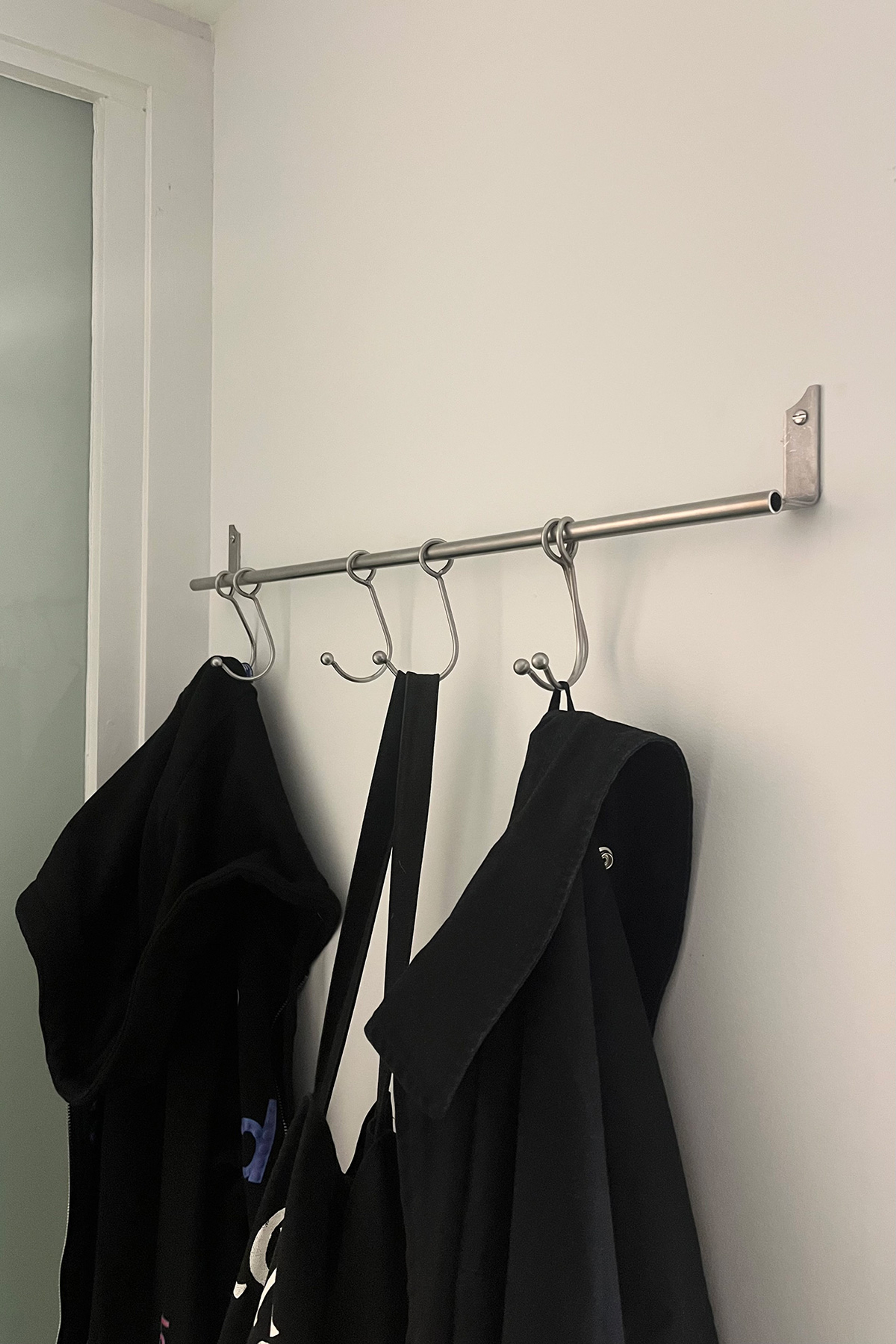 Coatrack with sliding hooks.