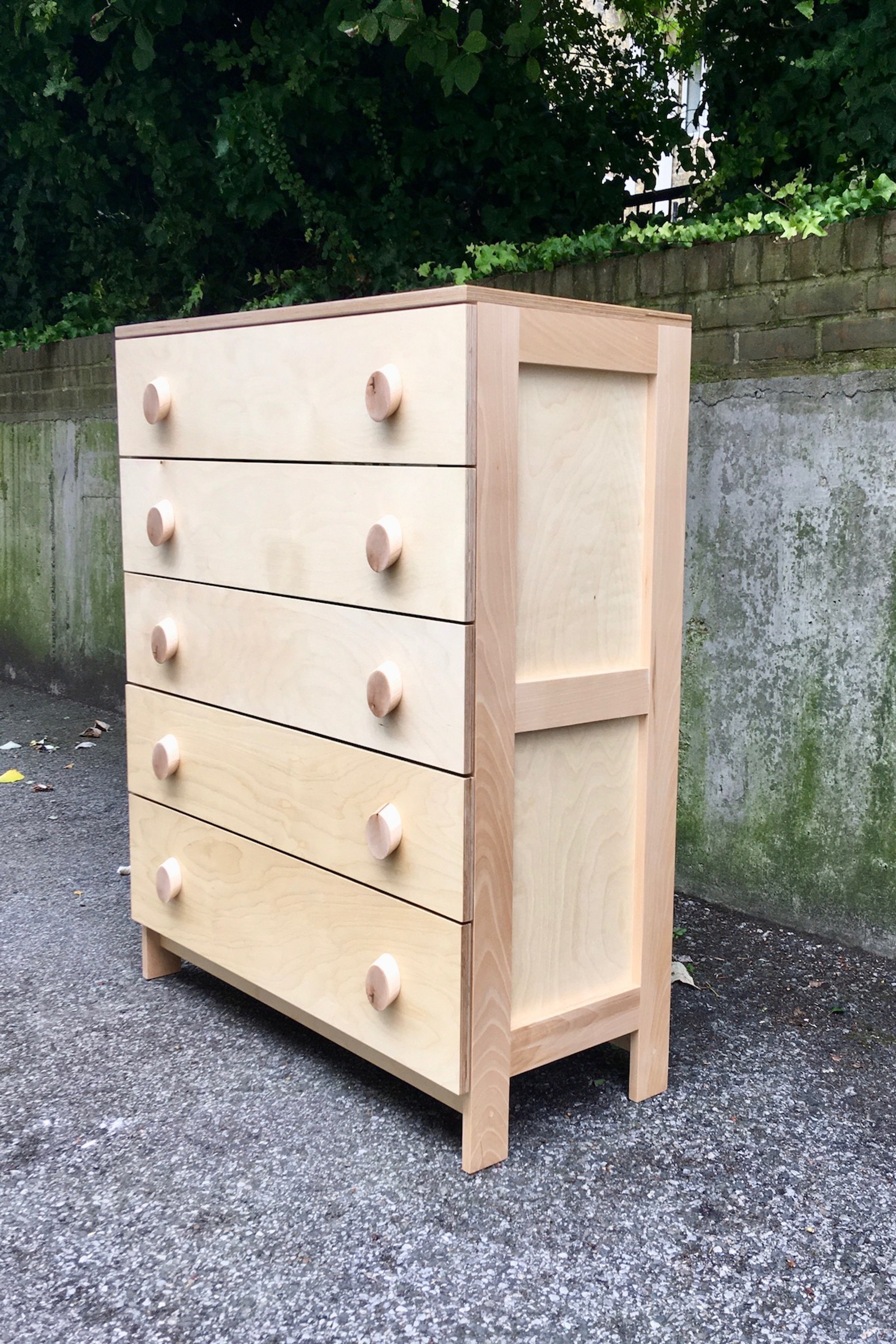 A large set of drawers in Birch Ply and solid Beech with Maple handles.
