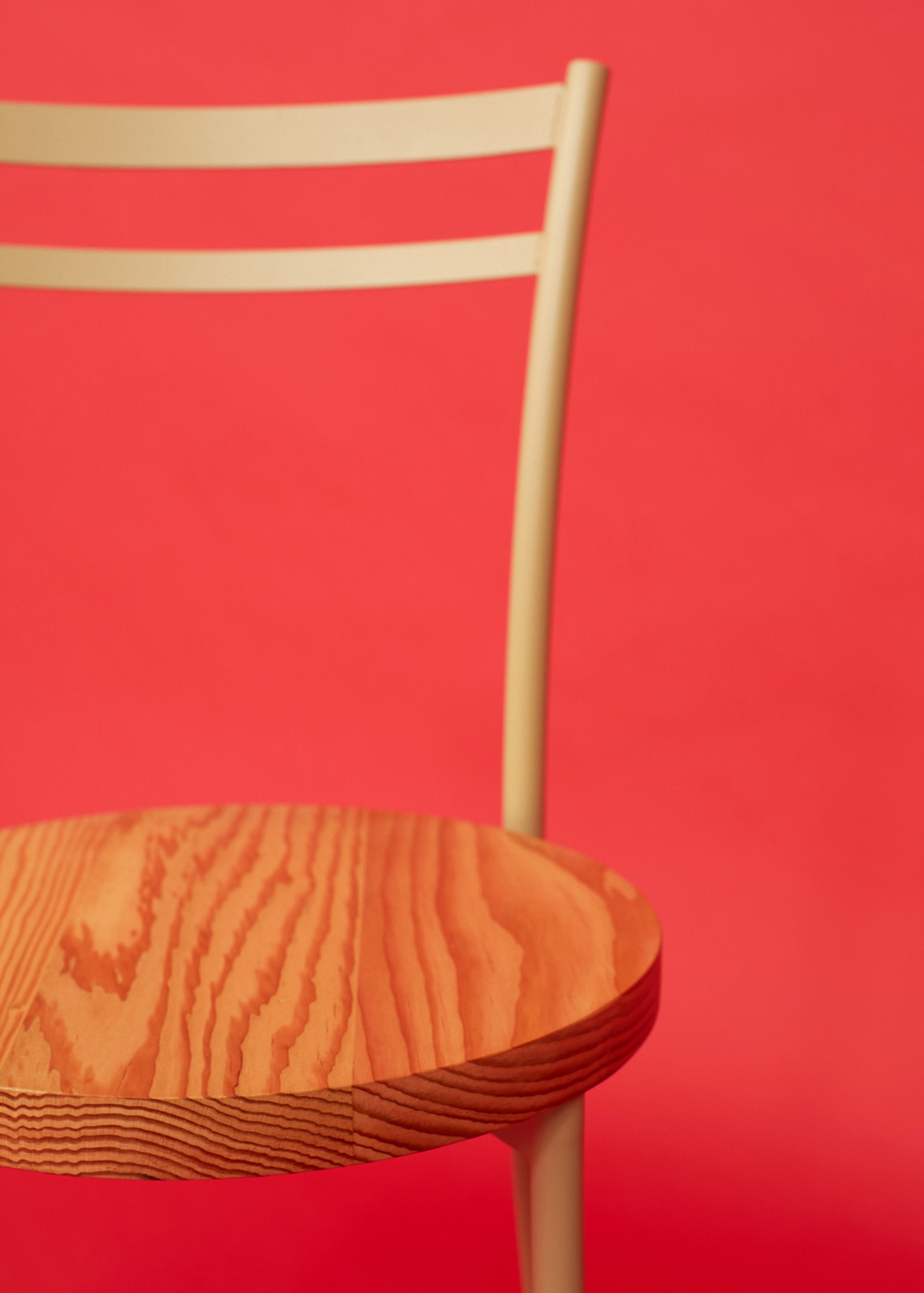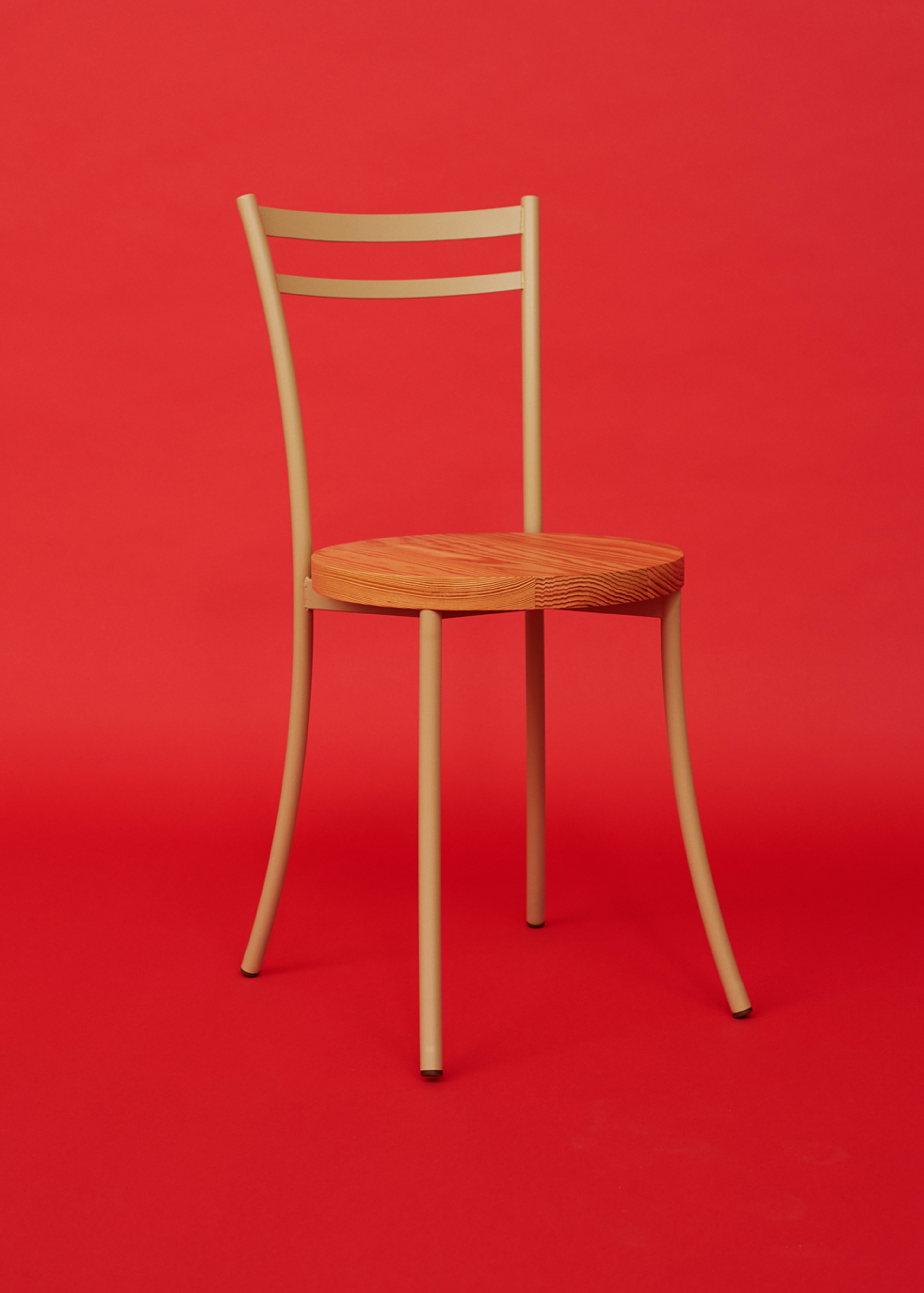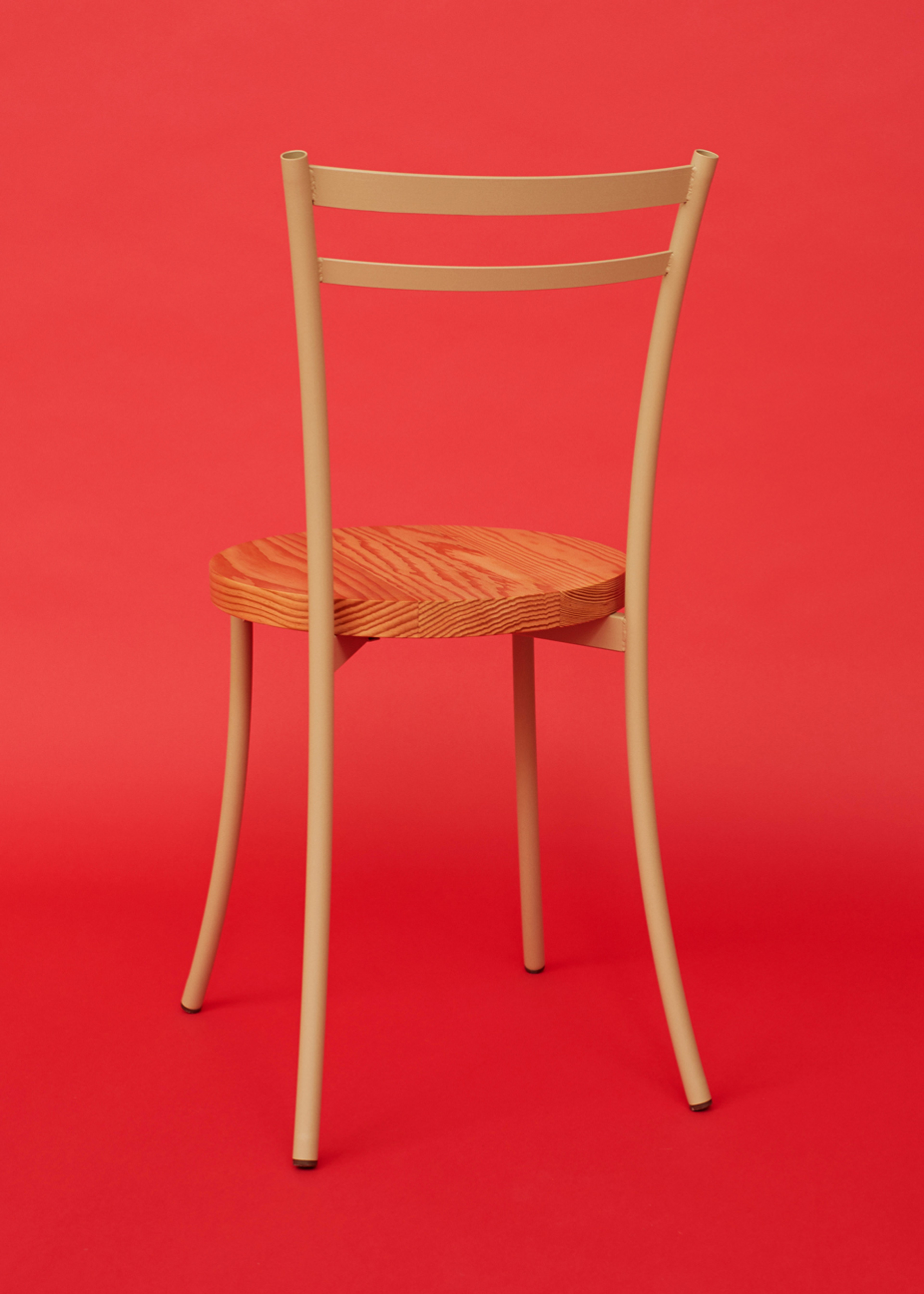 A homage to Thonet in steel. A light weight versatile chair with rolled 20mm Tubular ERW Steel frame. The tubular steel creates a surprisingly light yet strong frame which is intended to work with either an upholstered or wooden seat.